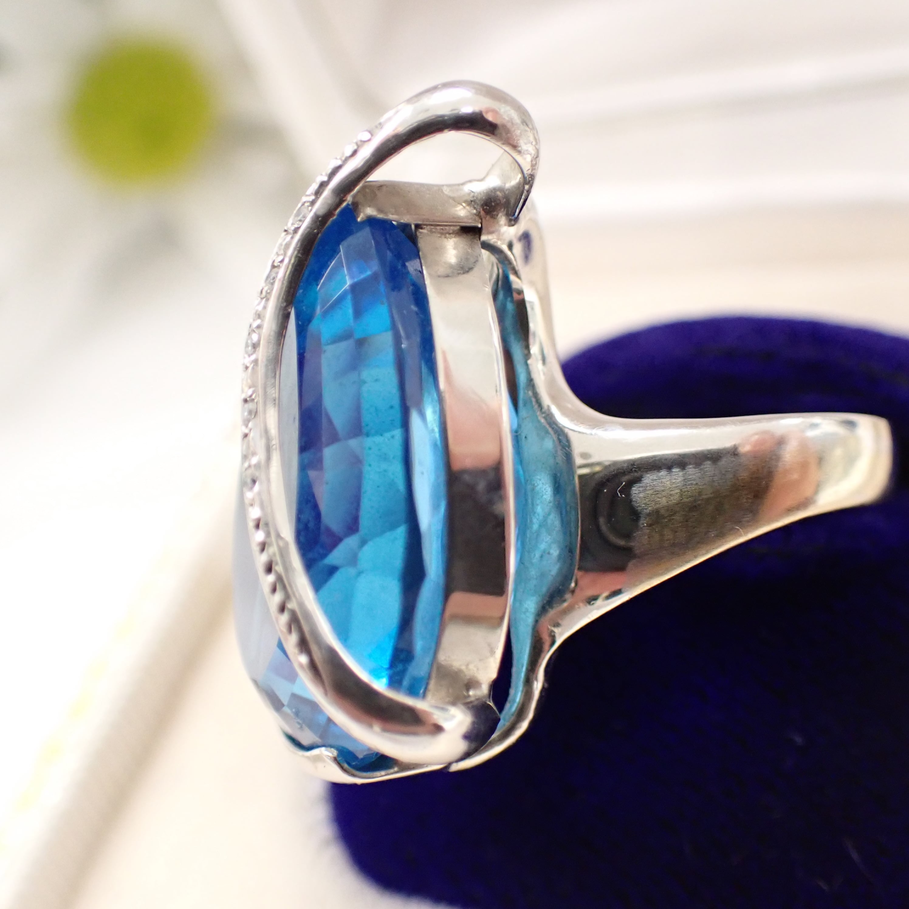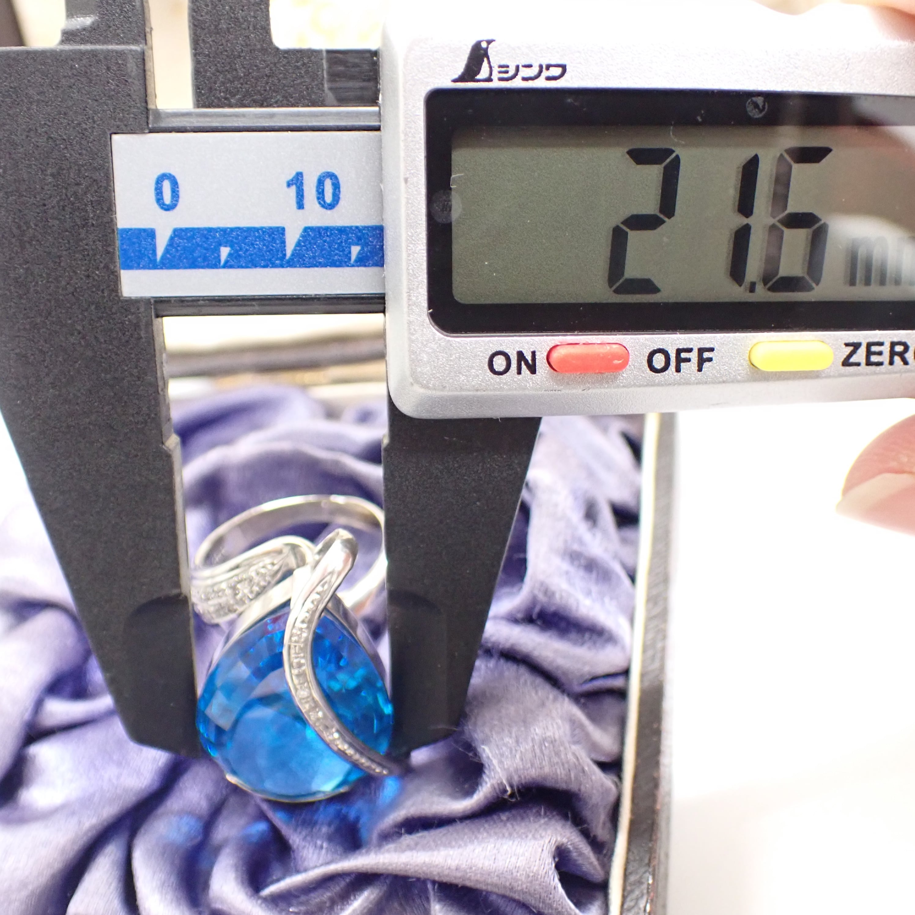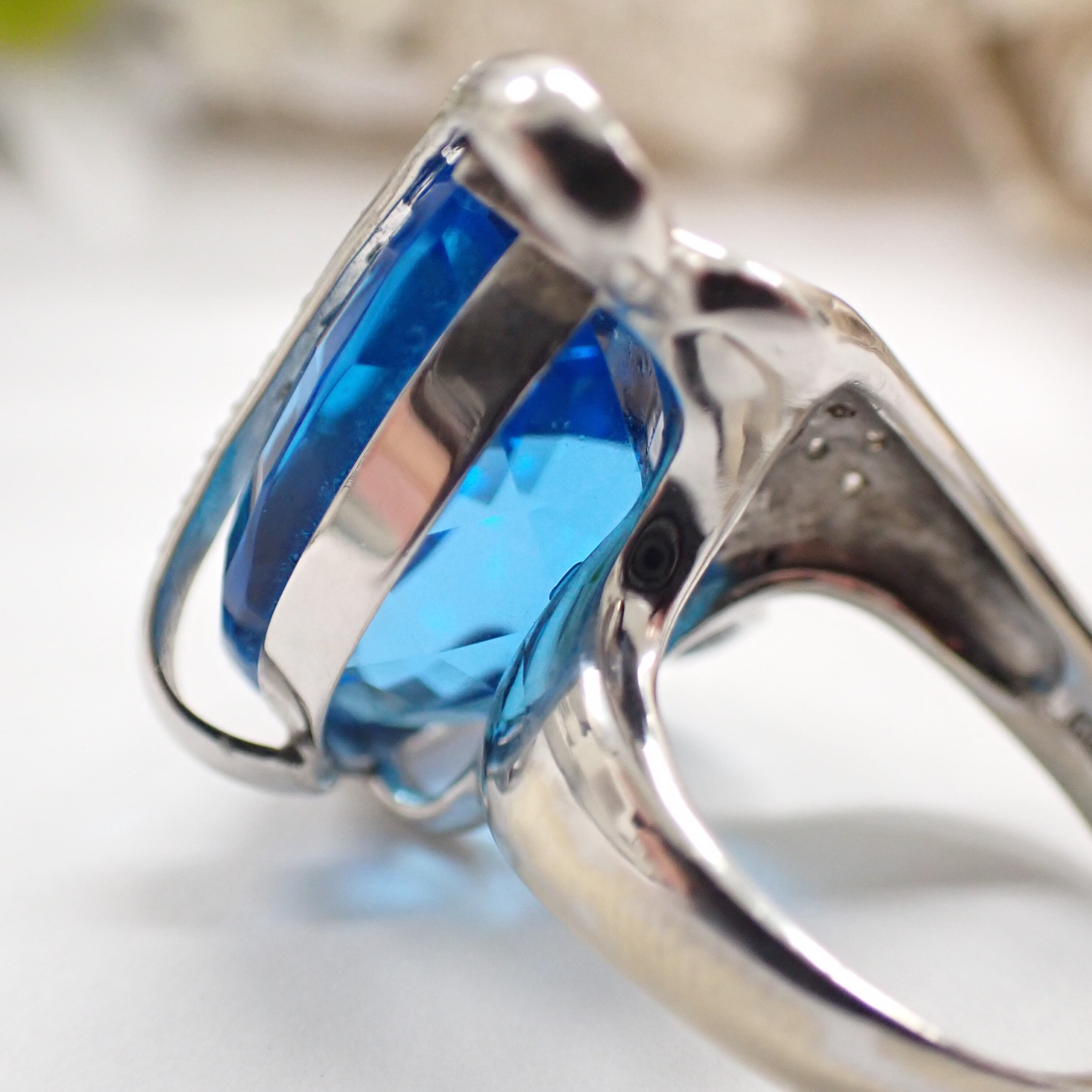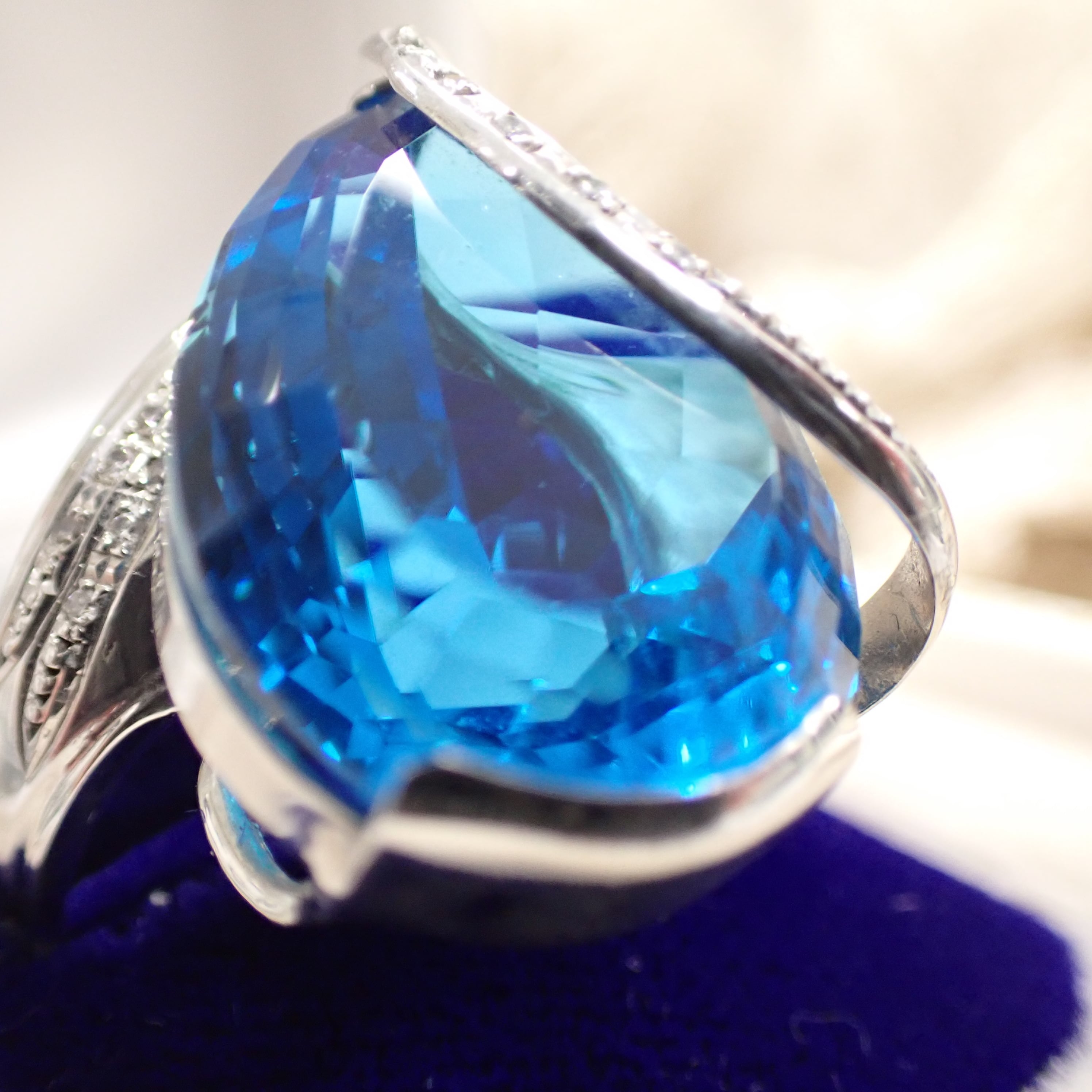 【日本の作品】昭和レトロ 大粒 ザマス 個性派 デザイン ヴィンテージ リングサイズ スイスブルートパーズ 33.03ct ダイヤモンド 0.10ct MOR00672