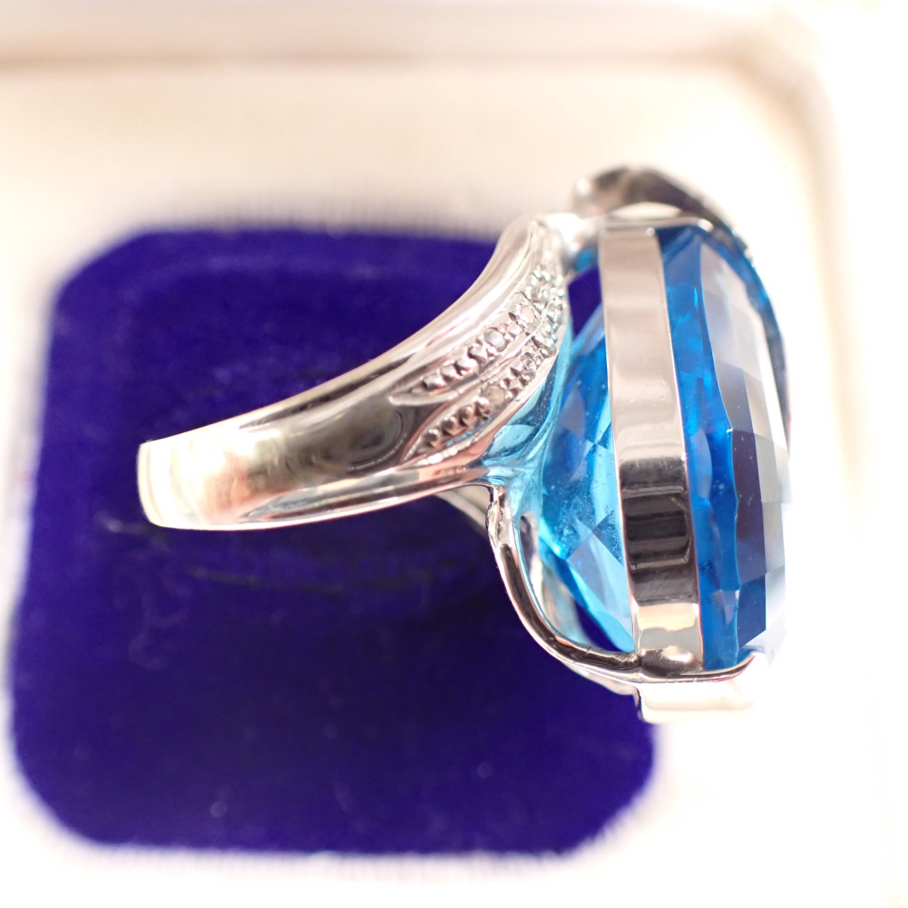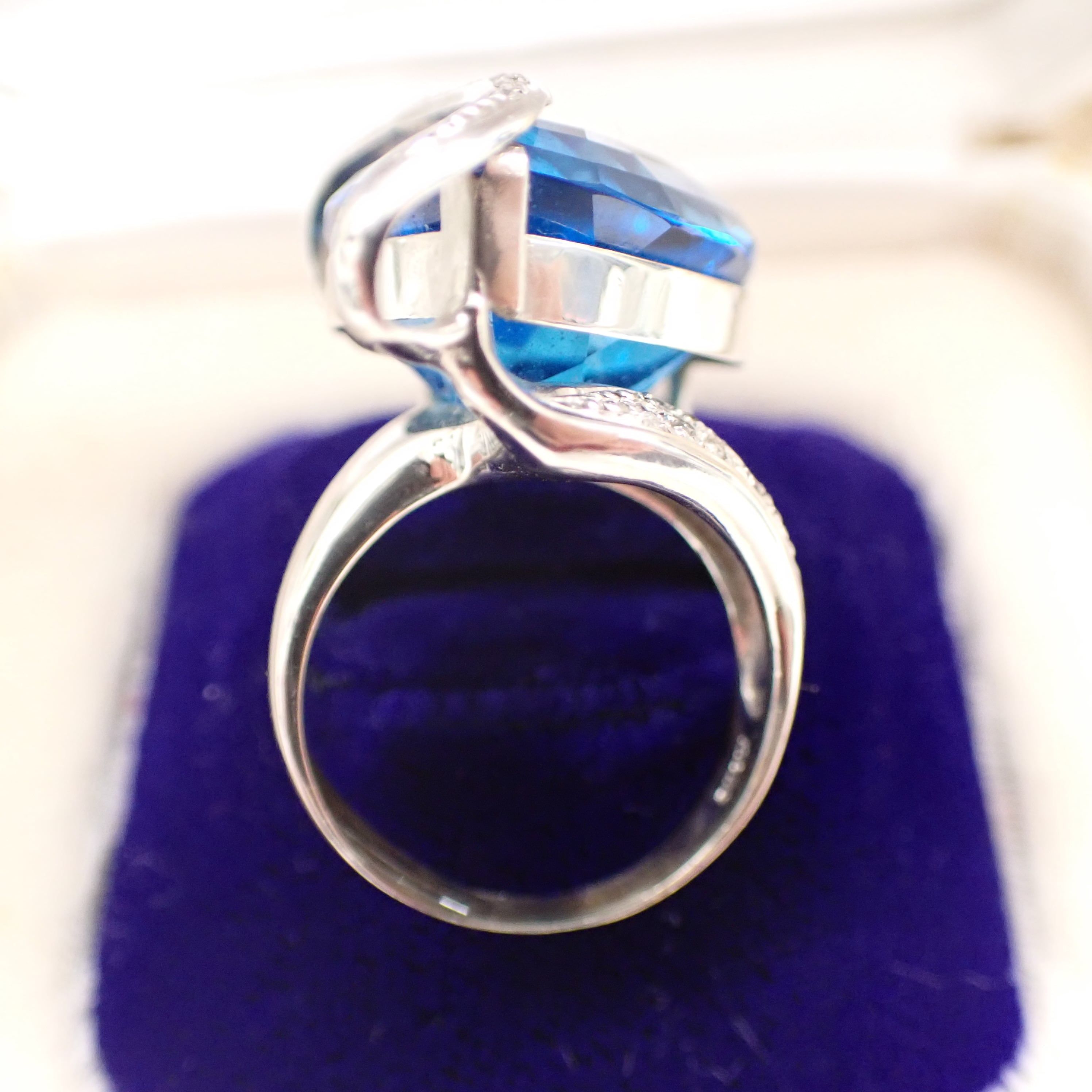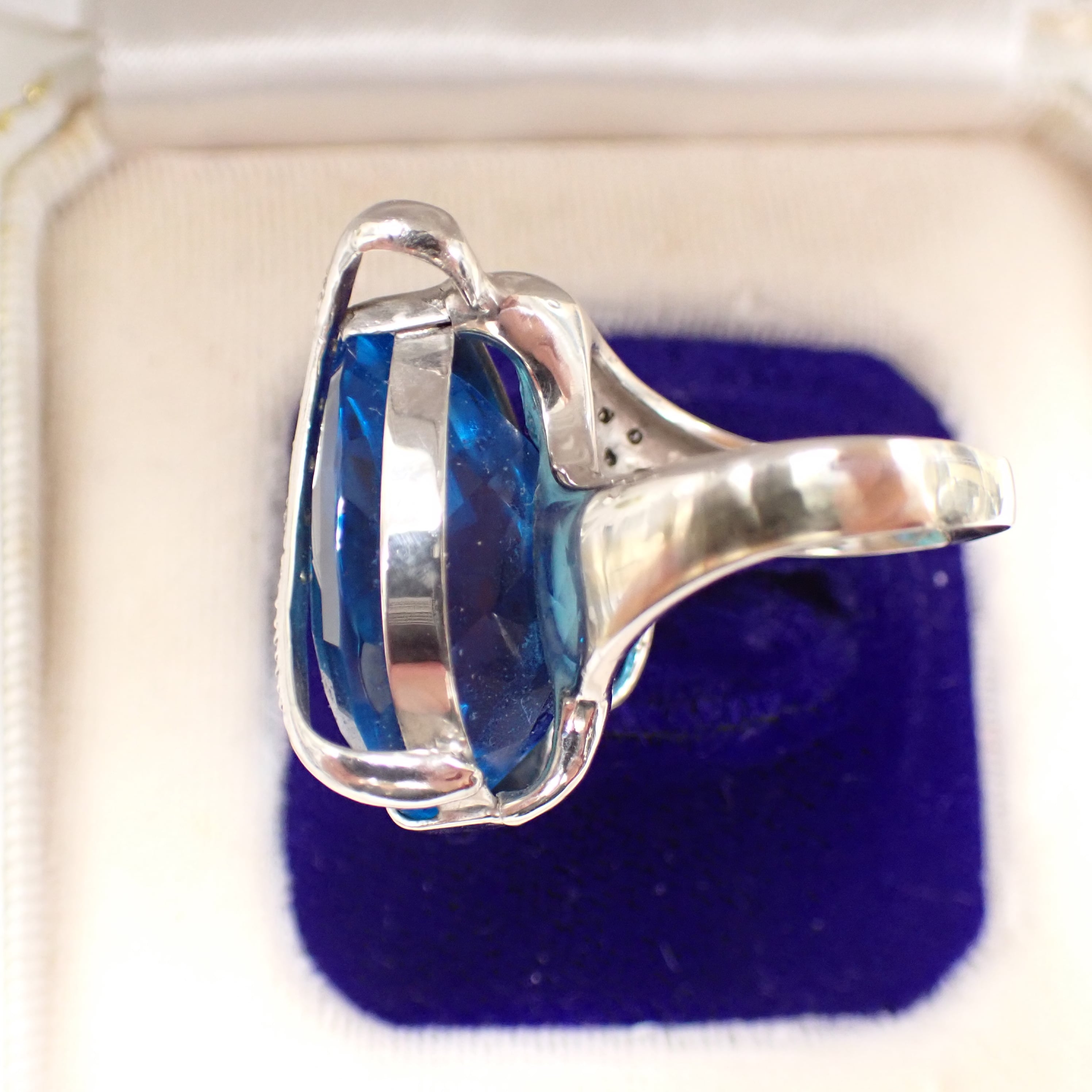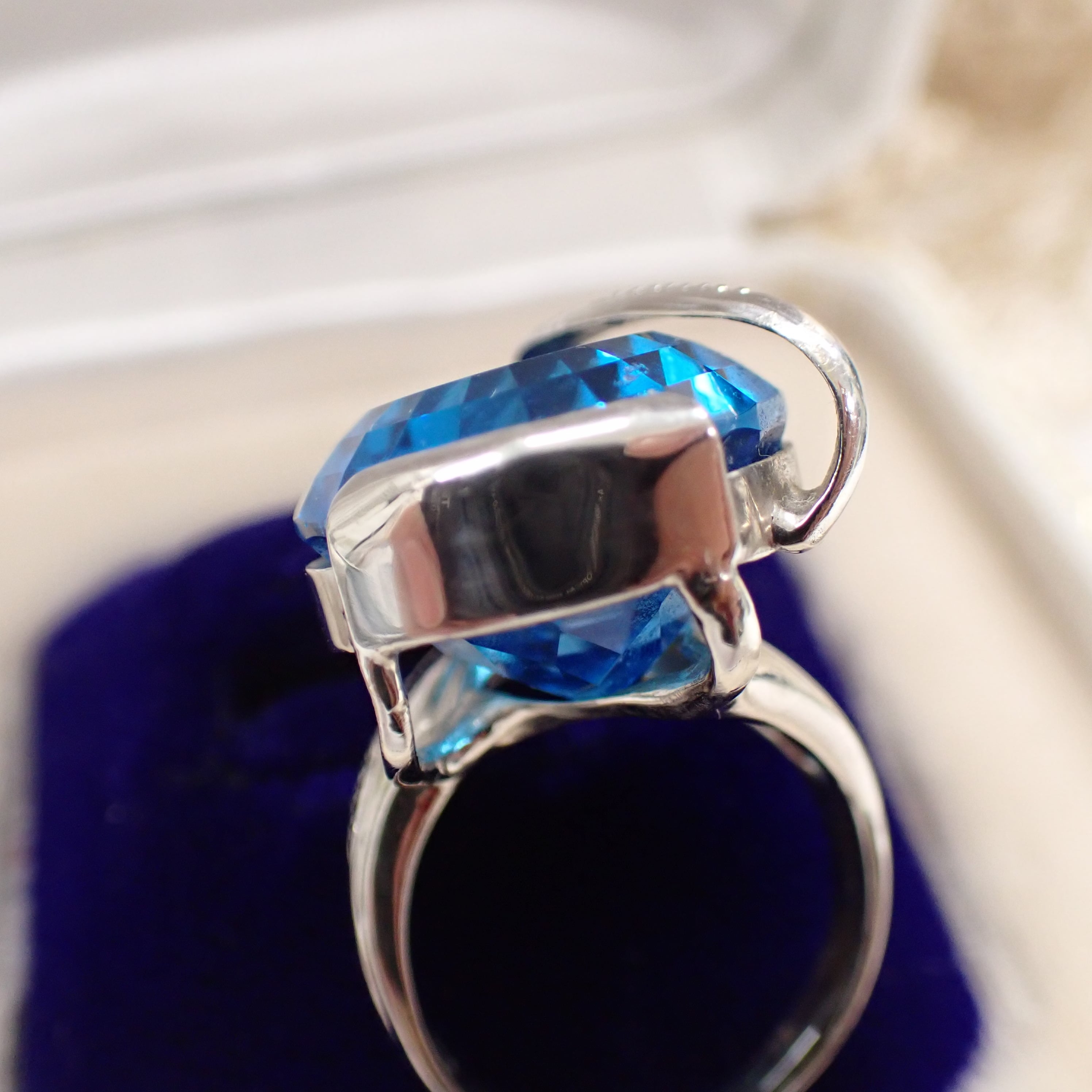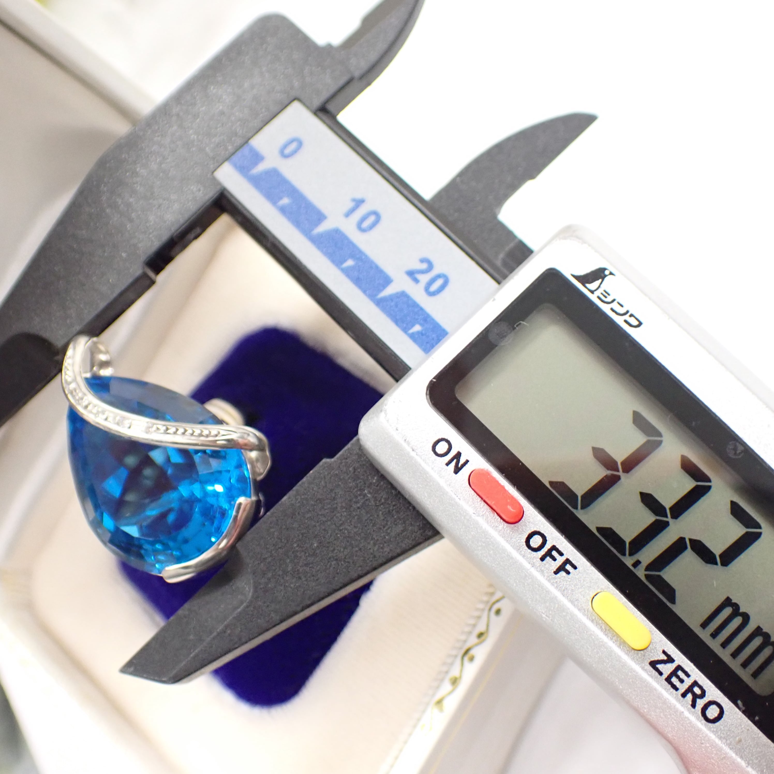 【日本の作品】昭和レトロ 大粒 ザマス 個性派 デザイン ヴィンテージ リングサイズ スイスブルートパーズ 33.03ct ダイヤモンド 0.10ct MOR00672