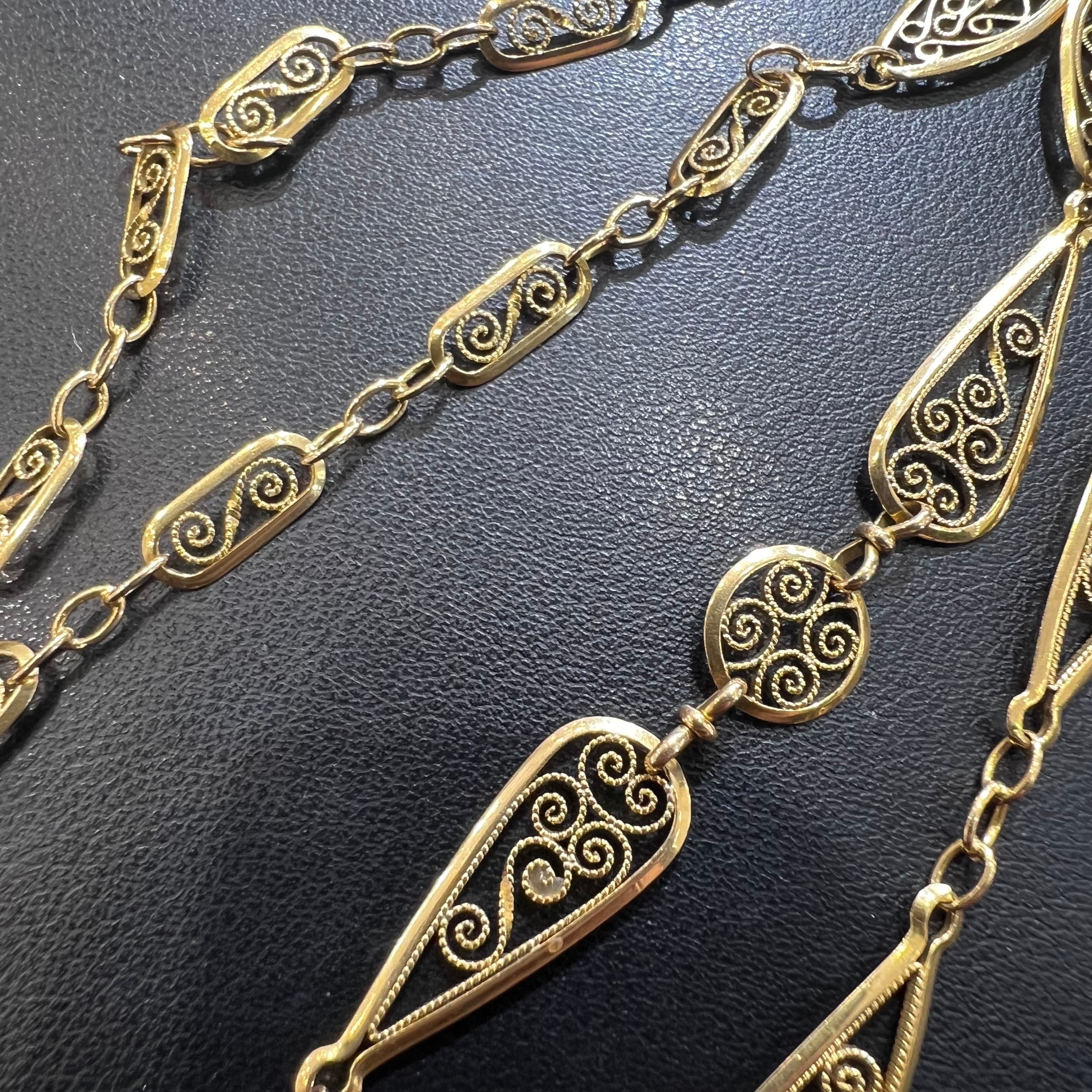 アンティークジュエリー DRN00094 フランス アンティーク 18金 K18 フィリグリーチェーン 47cm