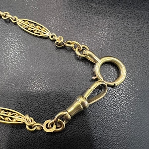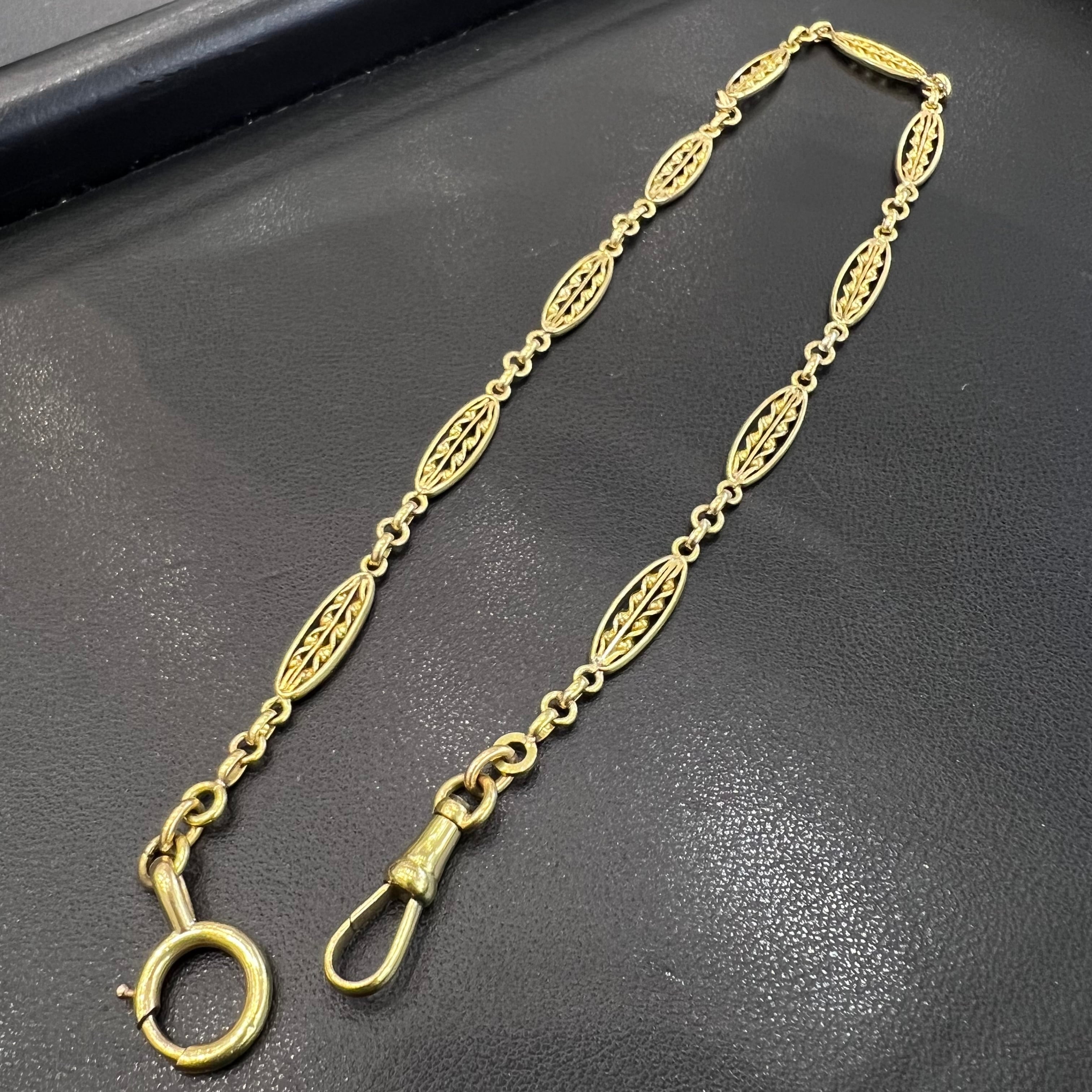繊細な透かし模様が連なる、フランス製アンティークの美しいウォッチチェーン。