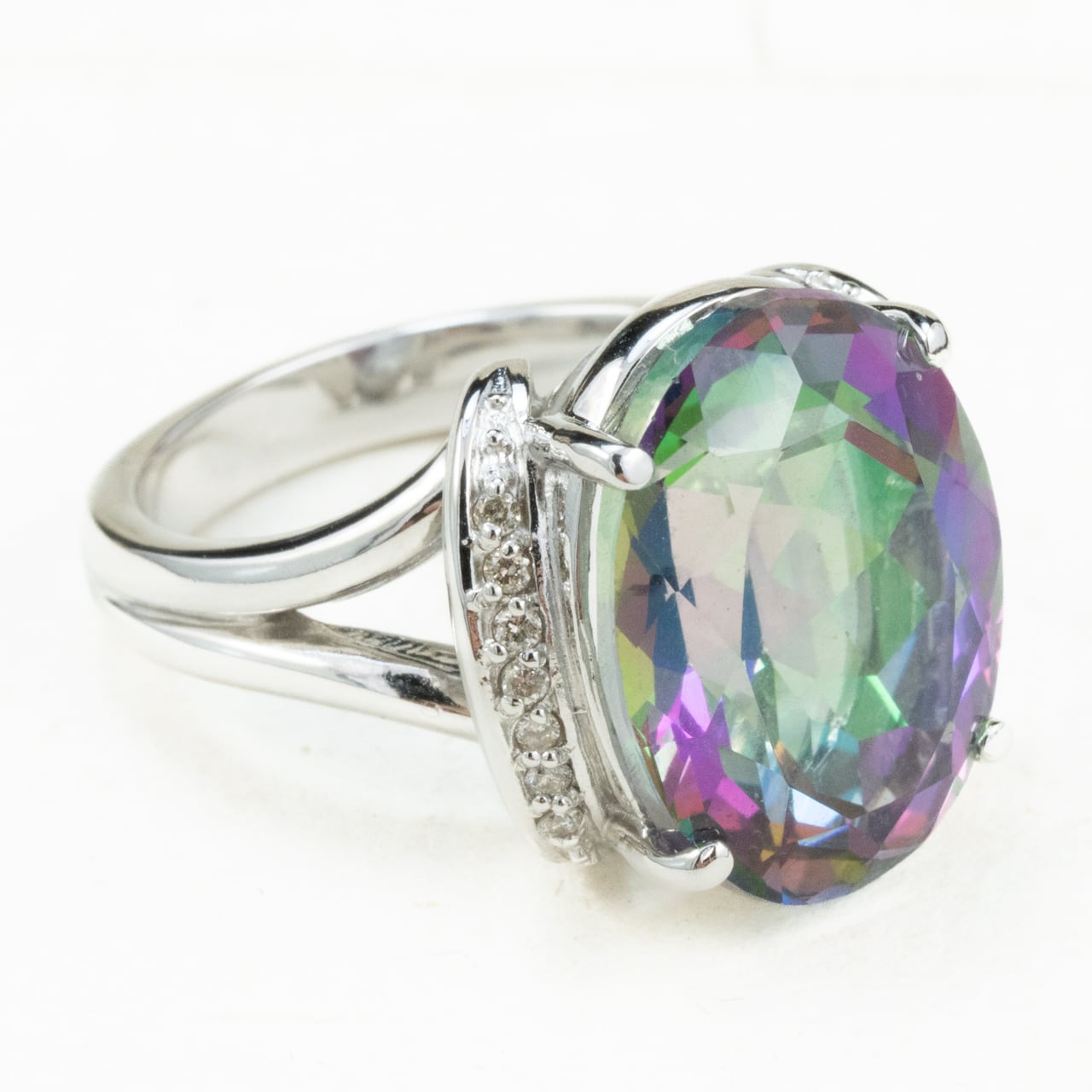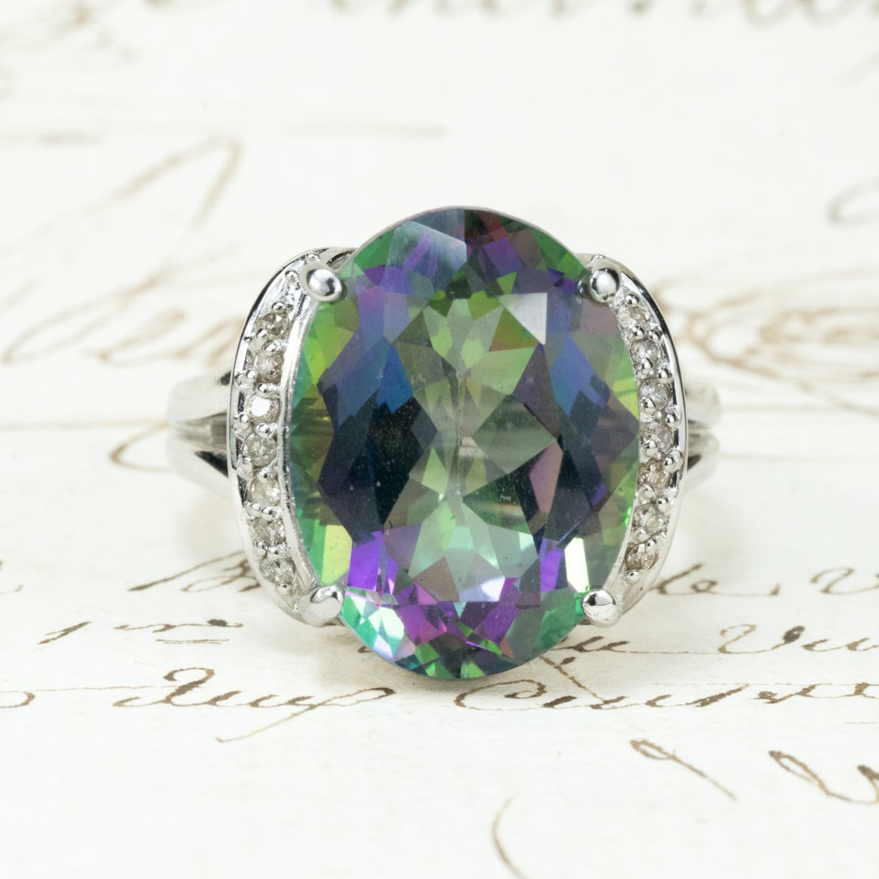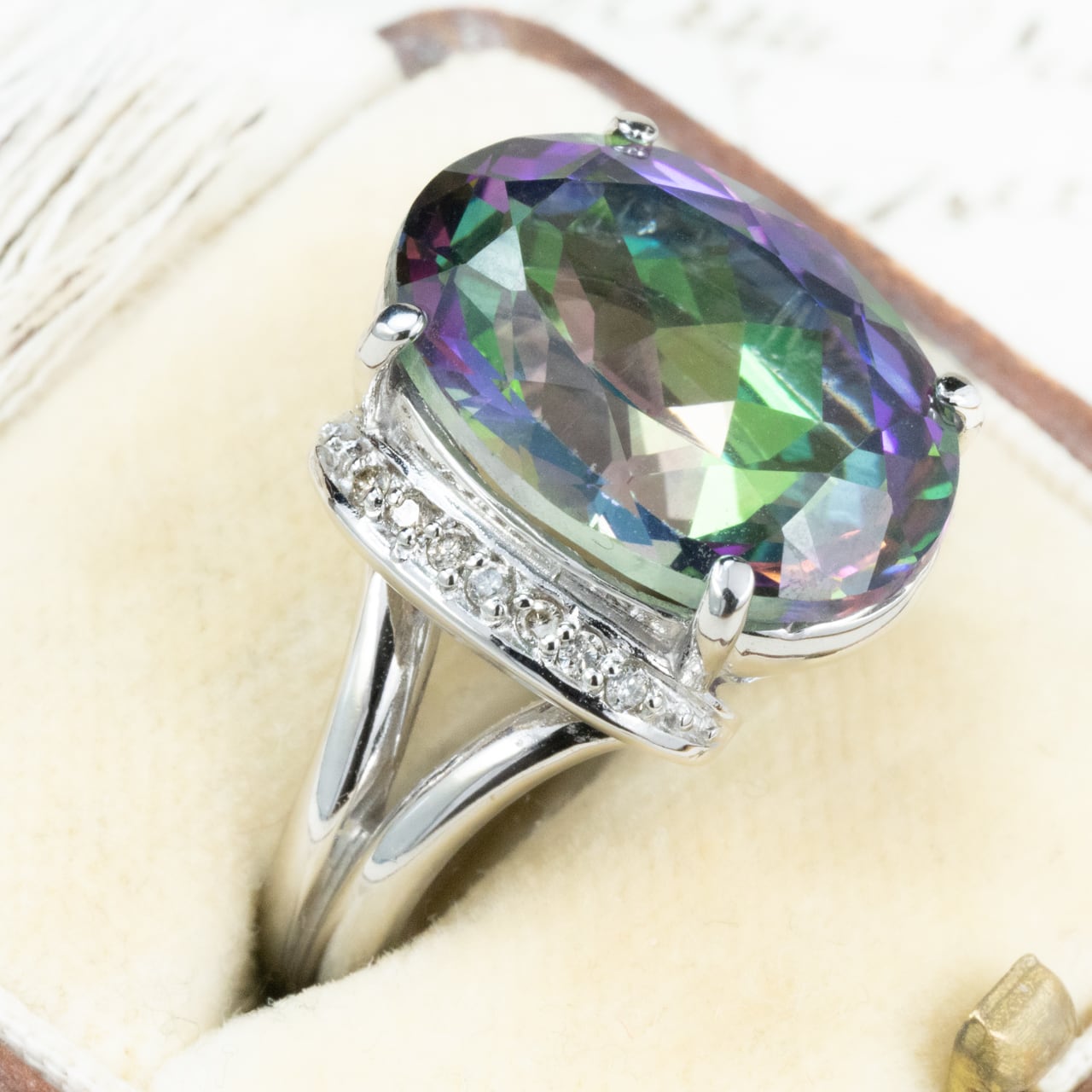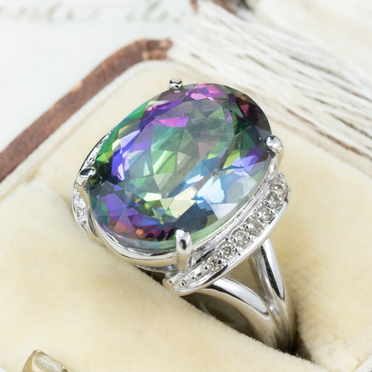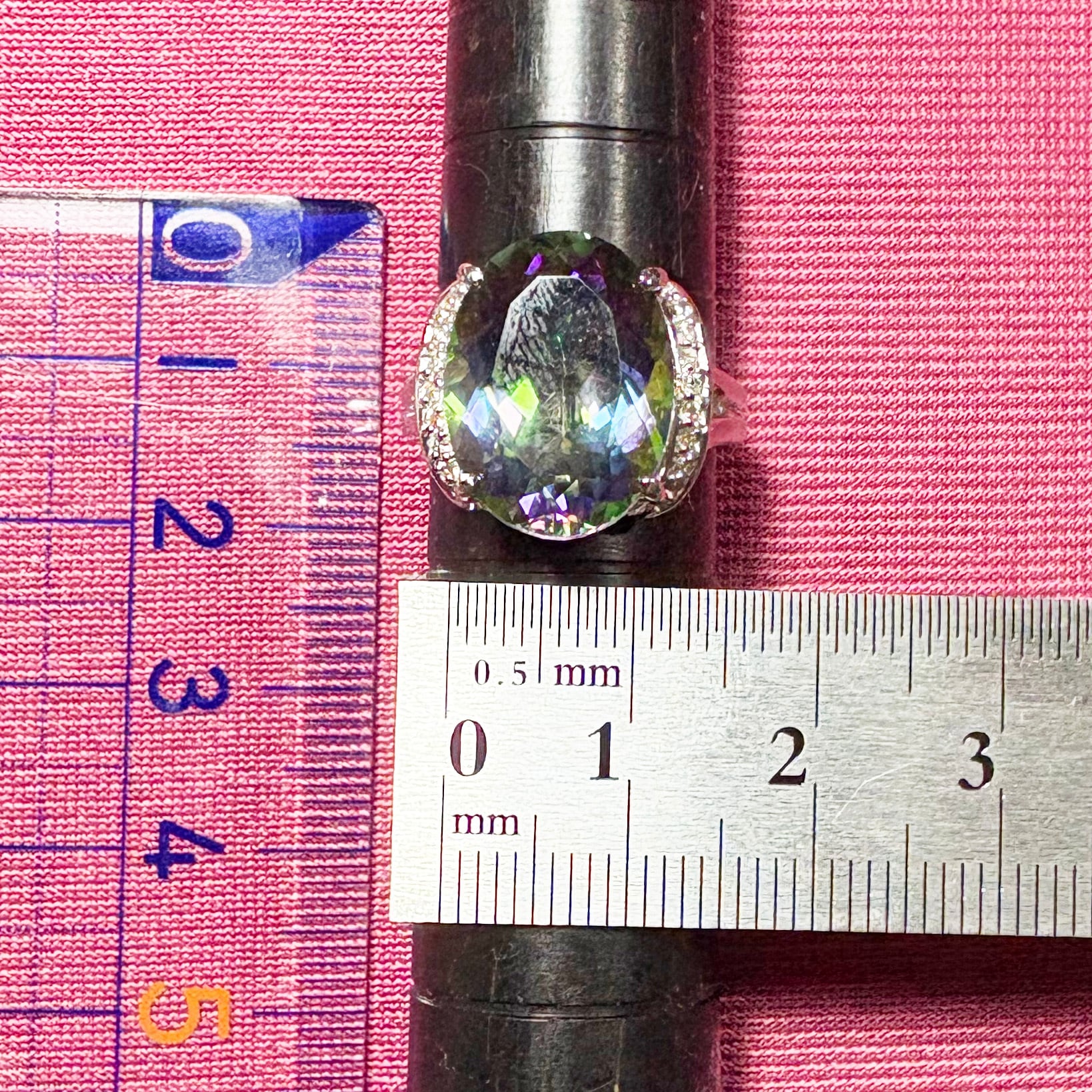 ヴィンテージジュエリー シルバーカラー ホワイトゴールド K18WG ミスティックトパーズ 11.695ct ダイヤモンド 0.10ct OKR00248
