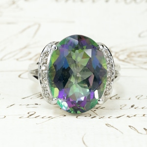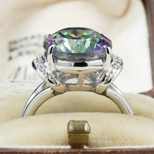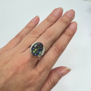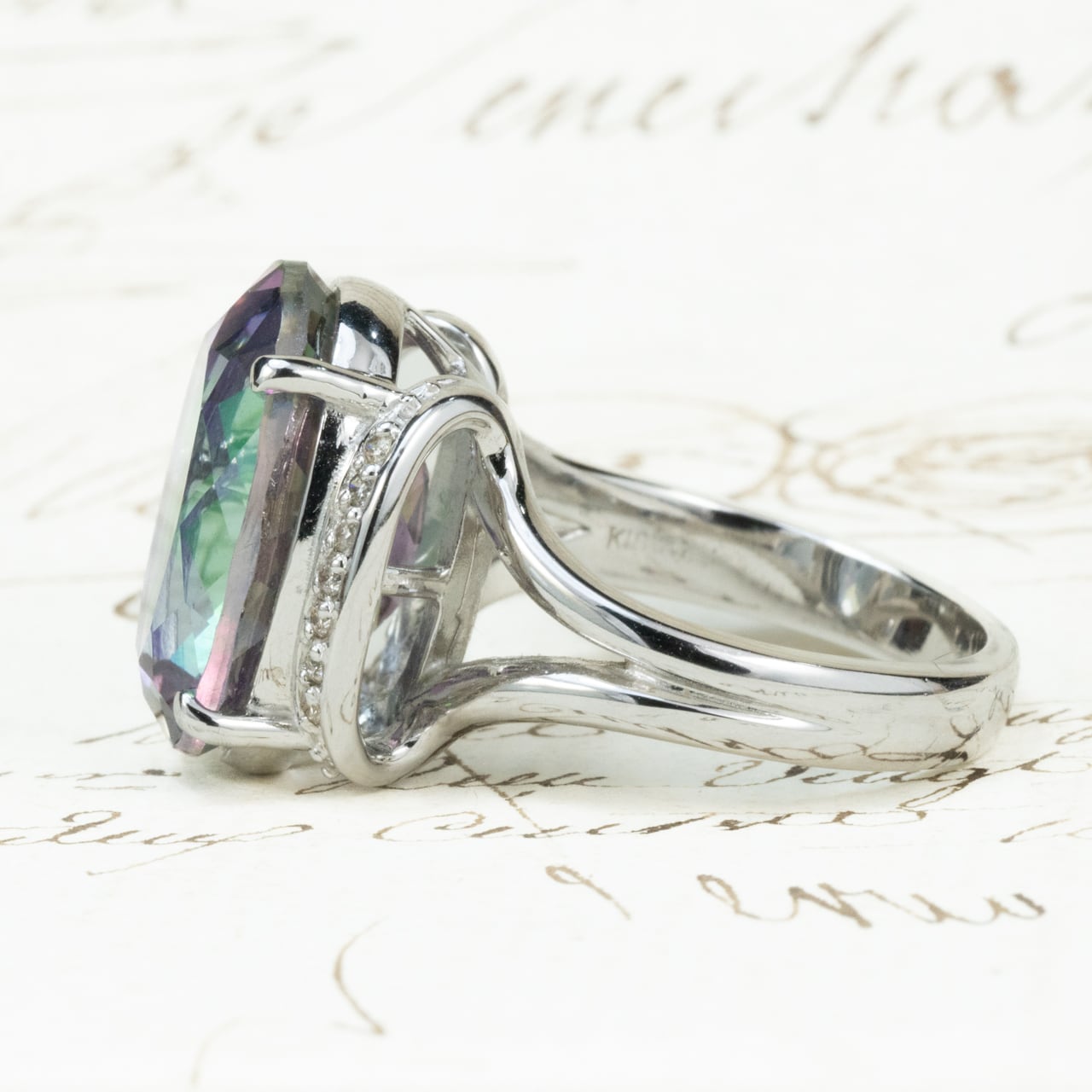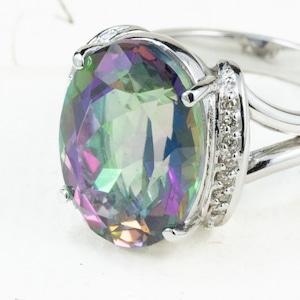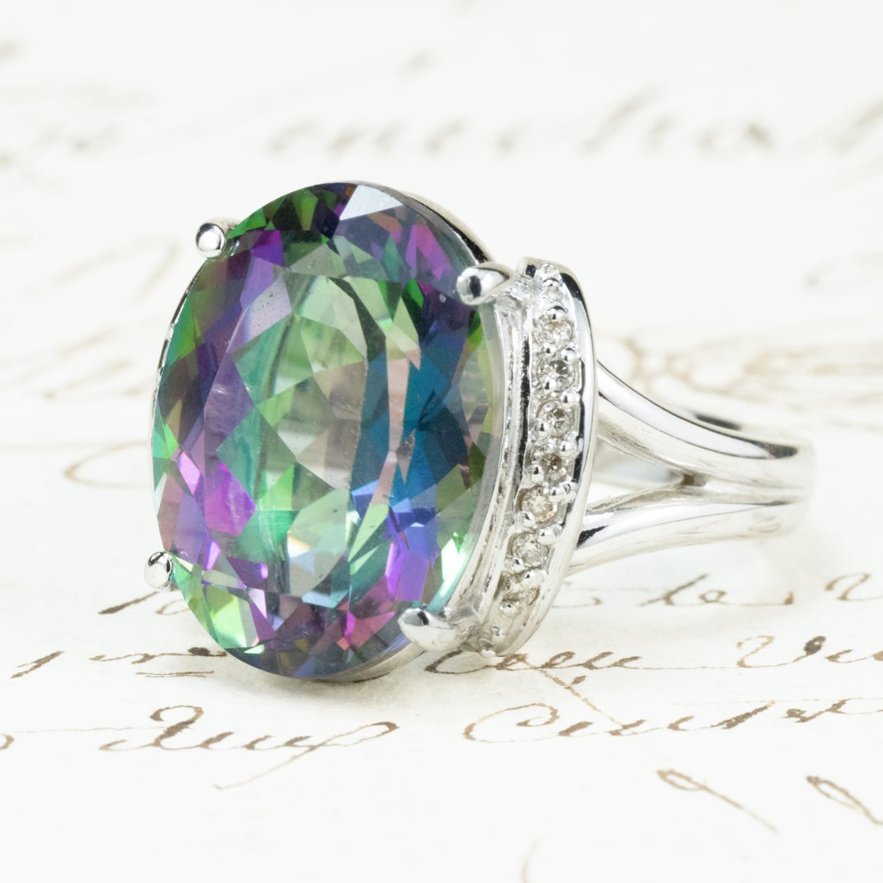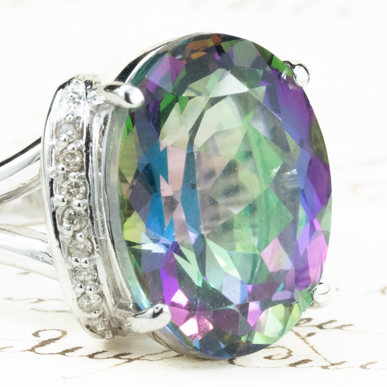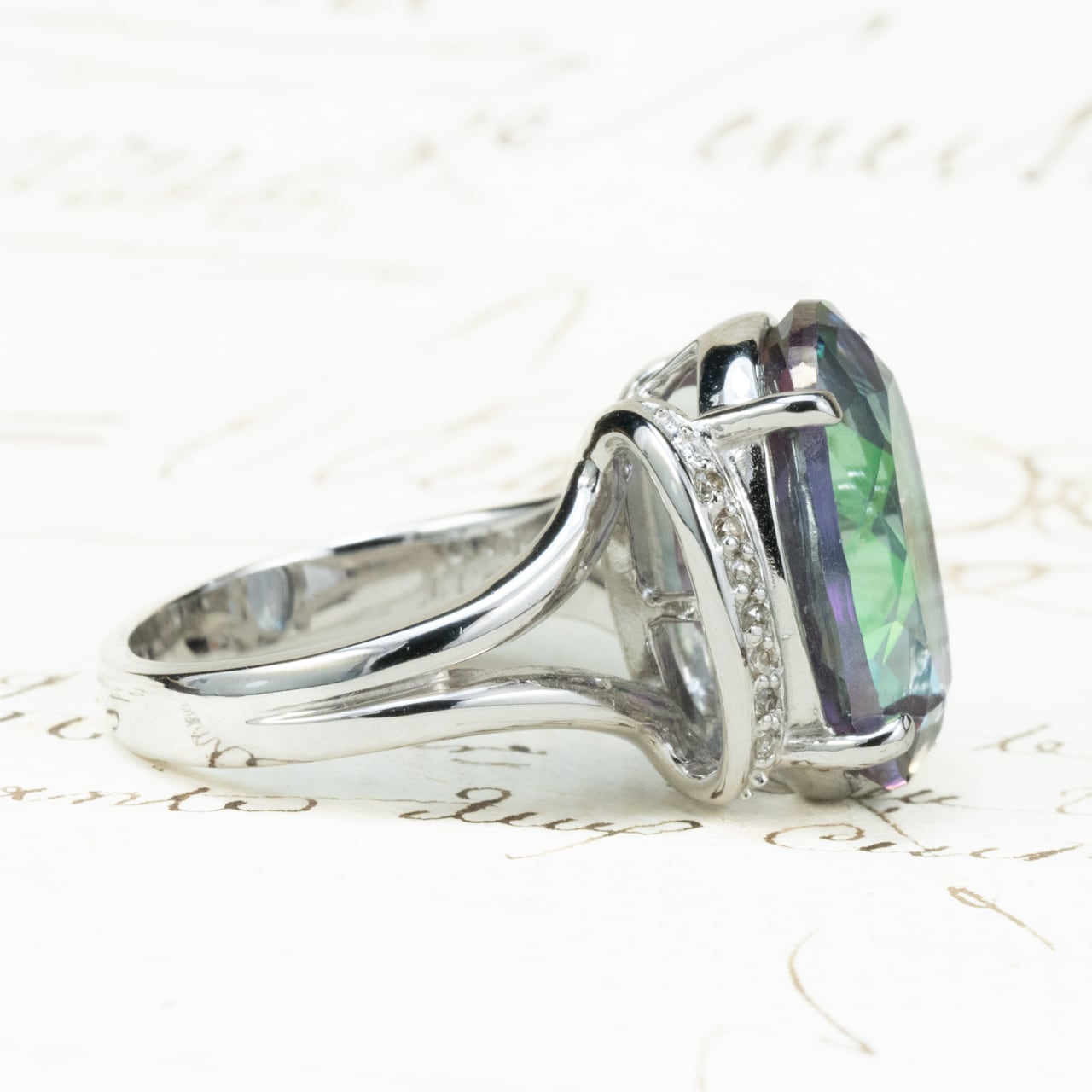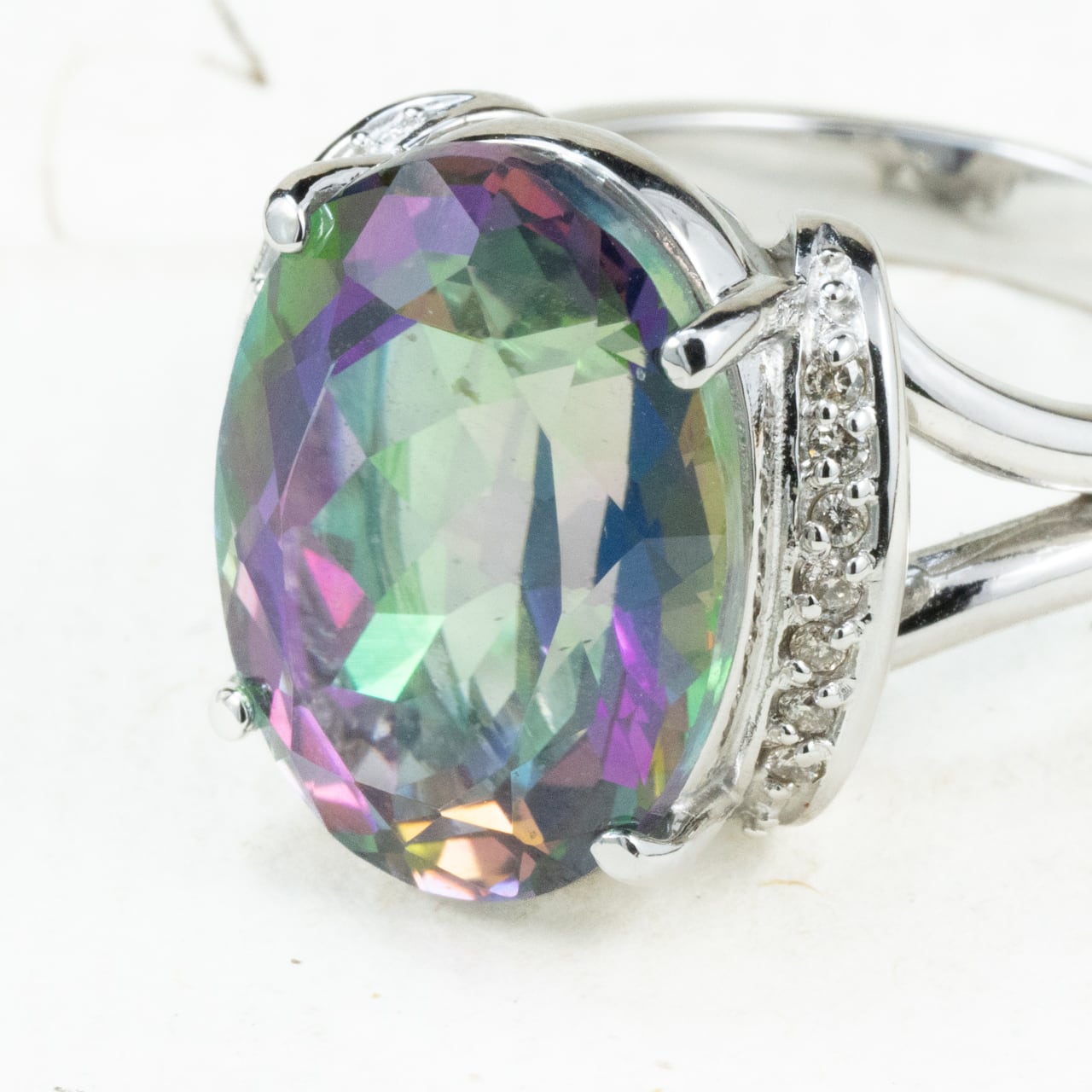 ヴィンテージジュエリー シルバーカラー ホワイトゴールド K18WG ミスティックトパーズ 11.695ct ダイヤモンド 0.10ct OKR00248