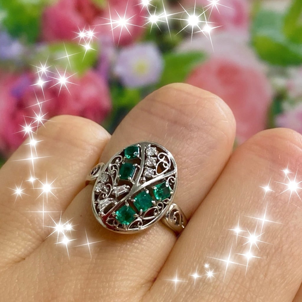 エメラルドは深みのあるグリーンがしっかりと感じられ、艶っとする透明感にもうっとり✨