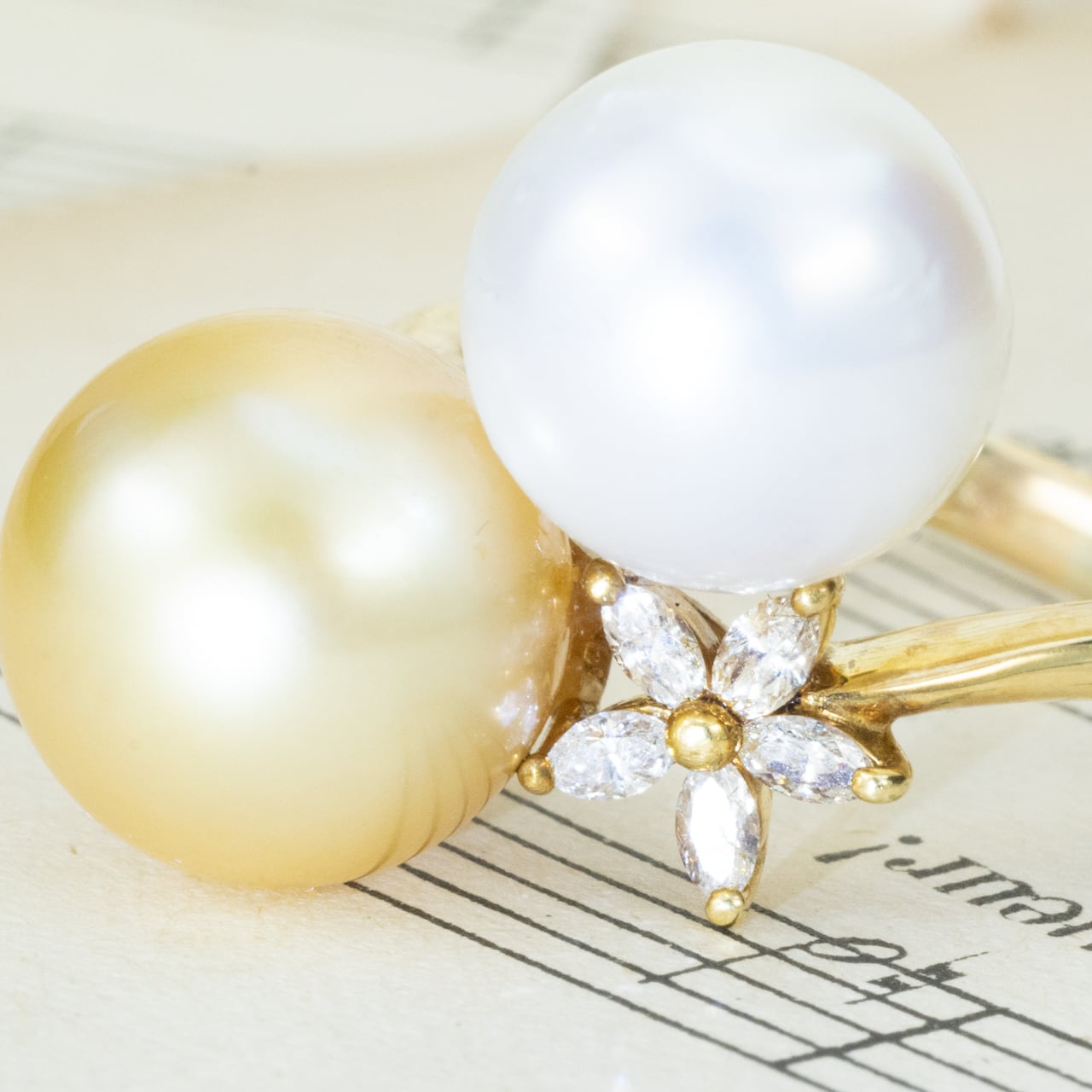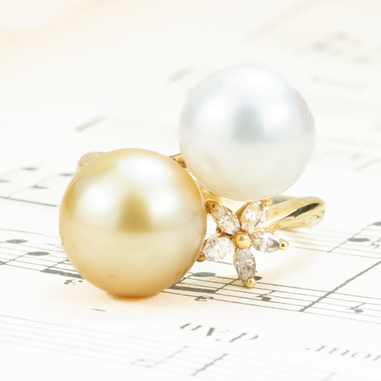 間にそっと添えられたダイヤの花が、