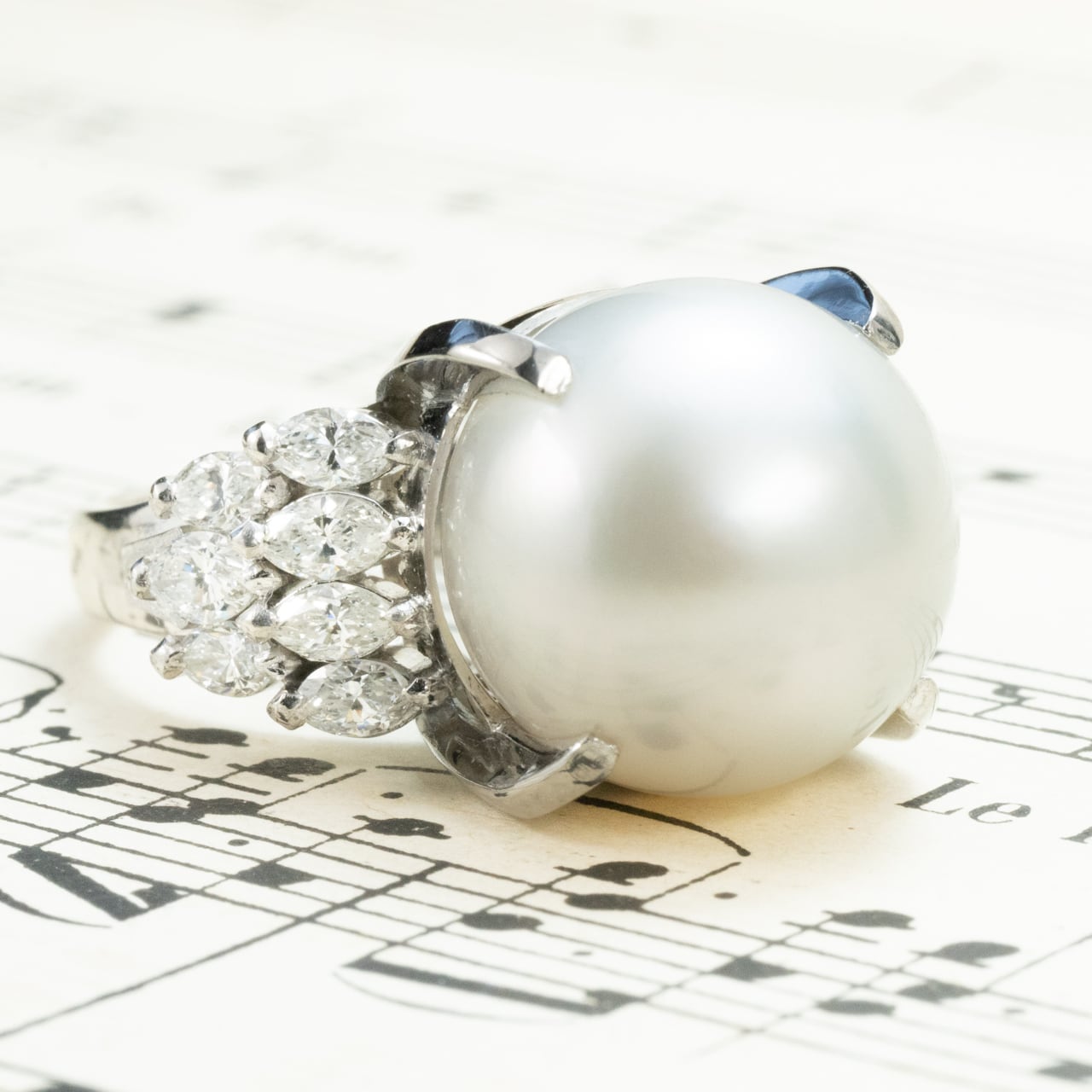 【日本の作品】Pt900 南洋真珠 約13.9mm D1.09 リング ~光が零れ落ちる絹の輝きを貴女に~ OKR00239