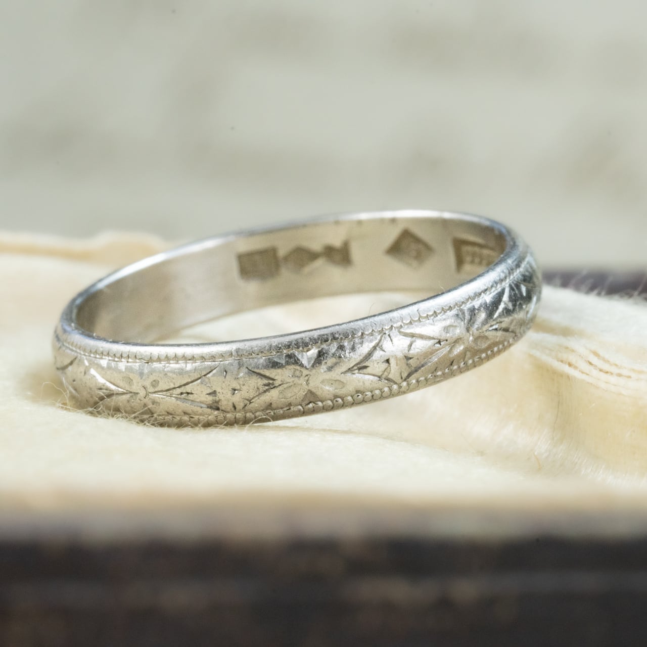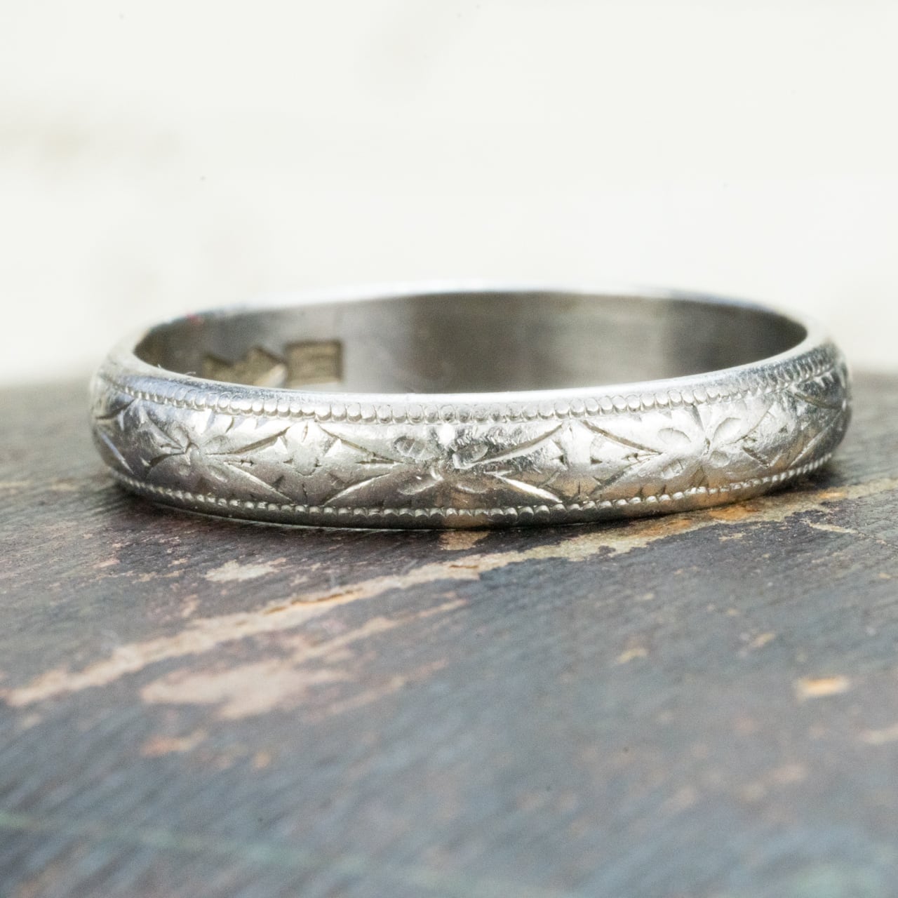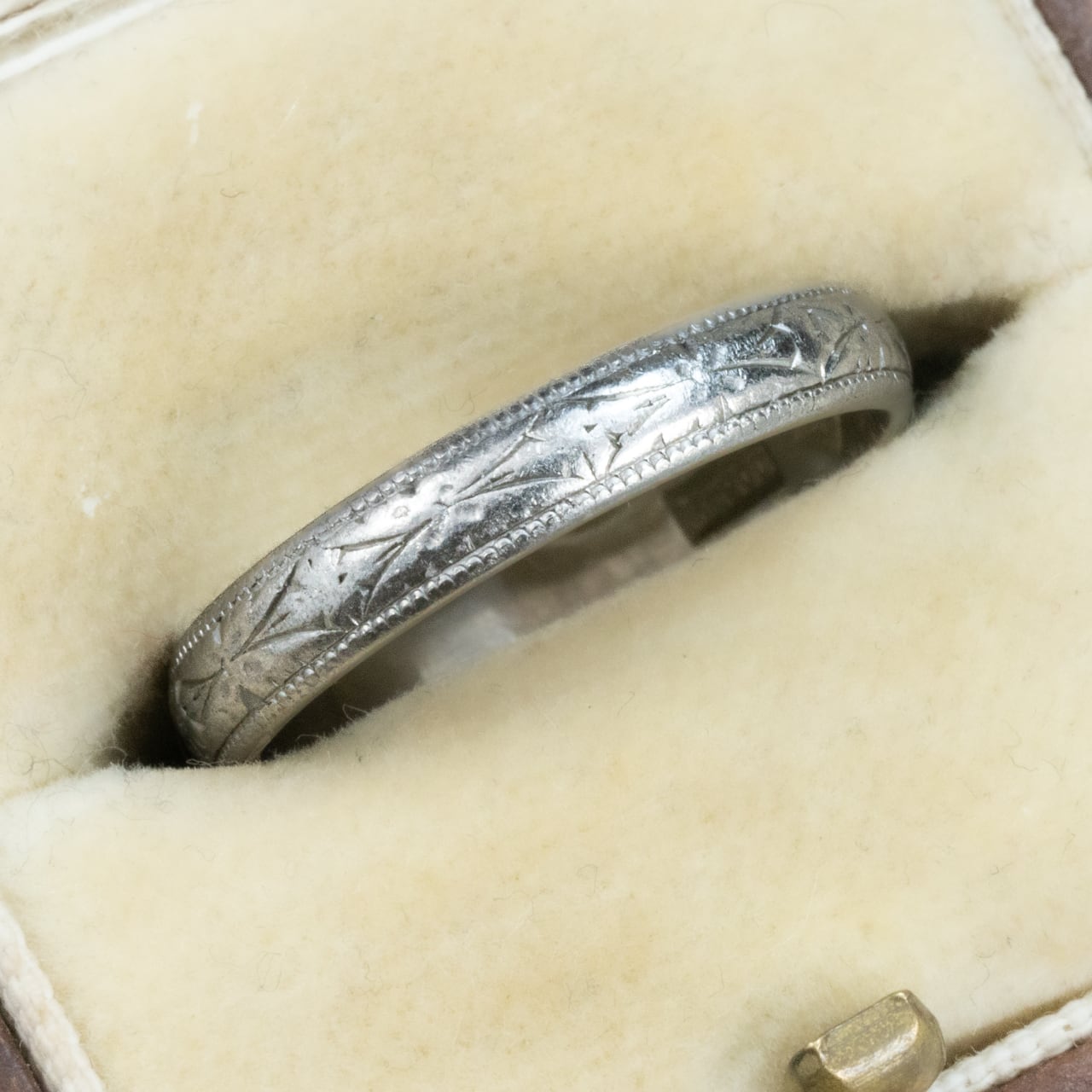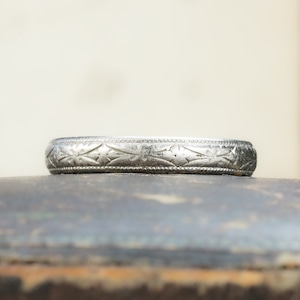 【日本作品】昭和レトロ ヴィンテージ ジュエリー Pm900(Pt900) 月桂樹 和彫り 和柄 手彫り 彫り リング MOR0054