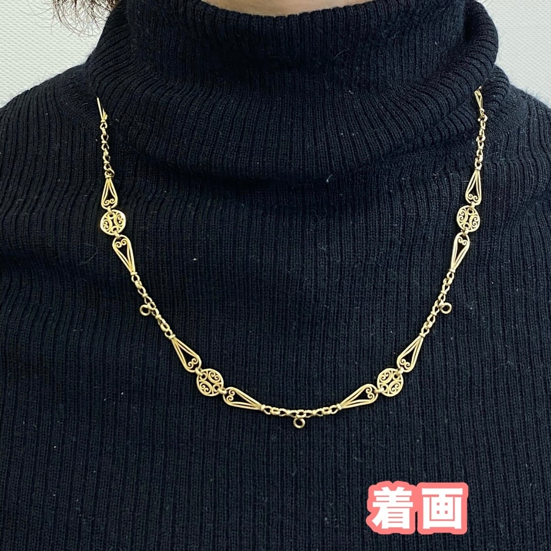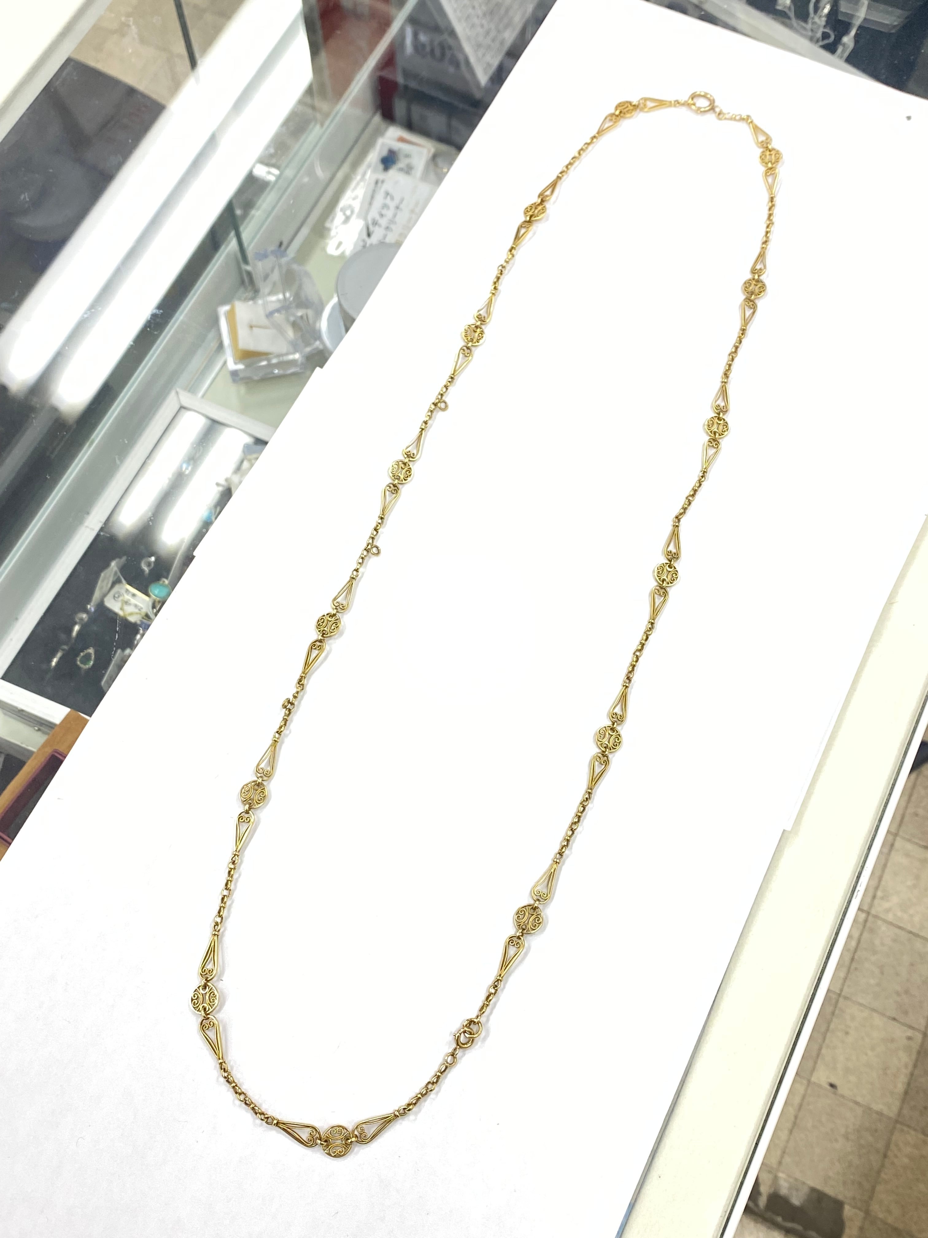 【1月末まで限定SET価格】アンティークジュエリーフランス アンティーク 18金 K18 フィリグリーチェーン DRN00092 (40cm)/DRN00093(51cm)