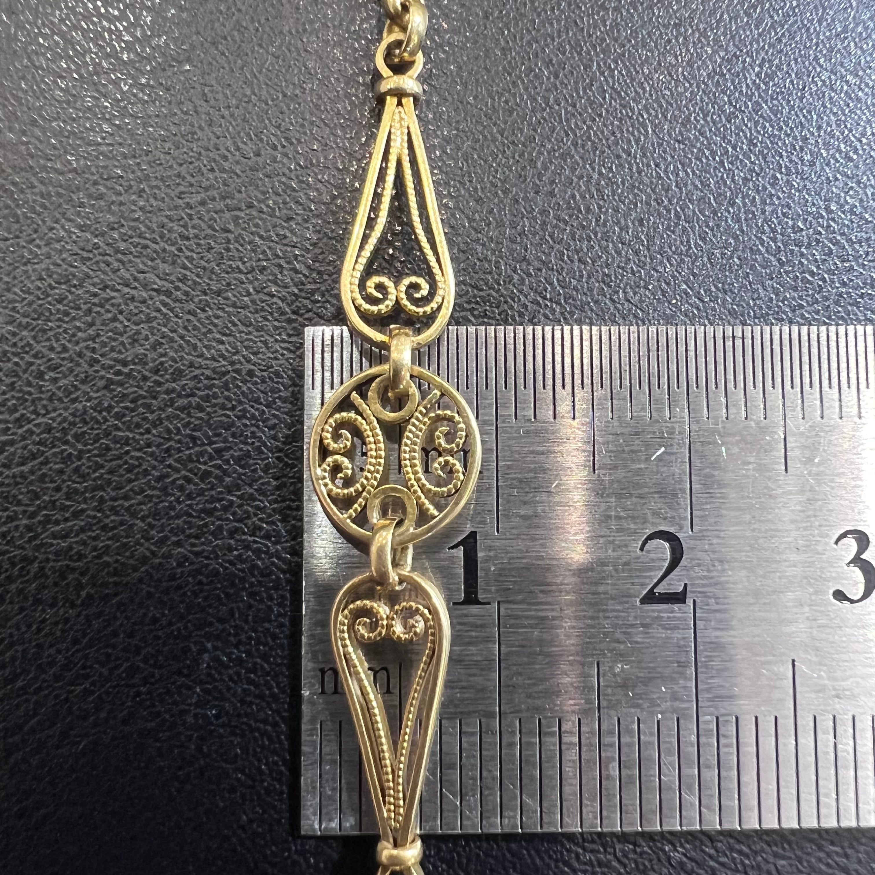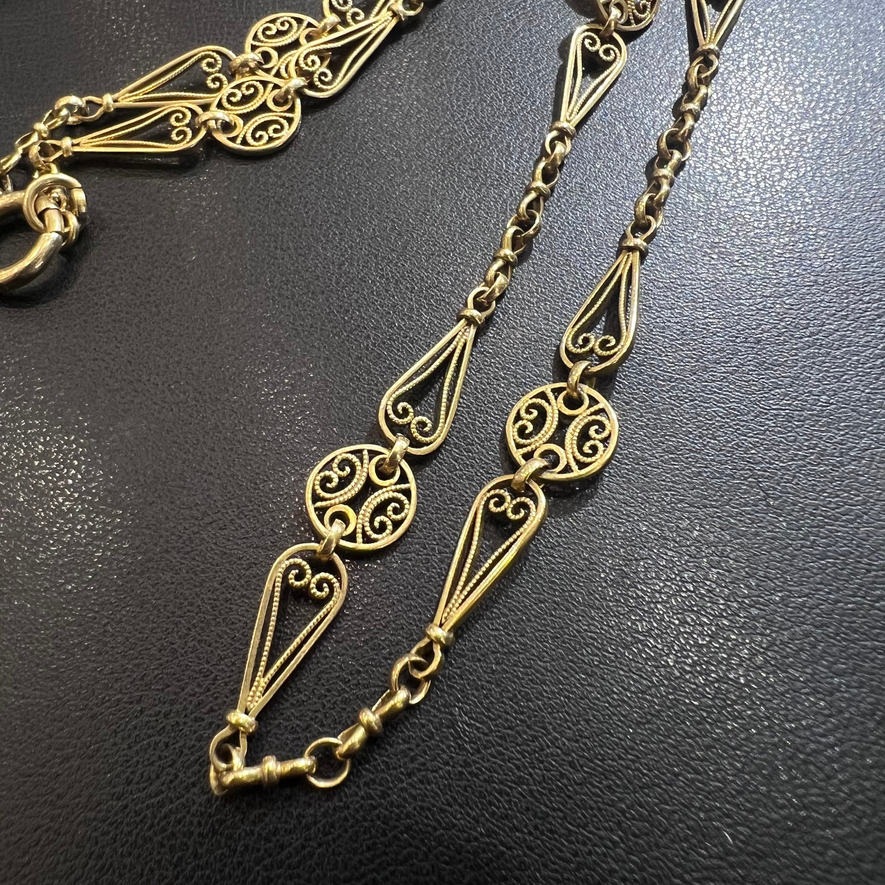 アンティークのフィリグリーチェーンは、もともとロングネックレスとして作られていたものも多く、時代の流れの中でセパレートして受け継がれたり、用途に合わせて分けられたり、一部のみが残ったケースも少なくありません。