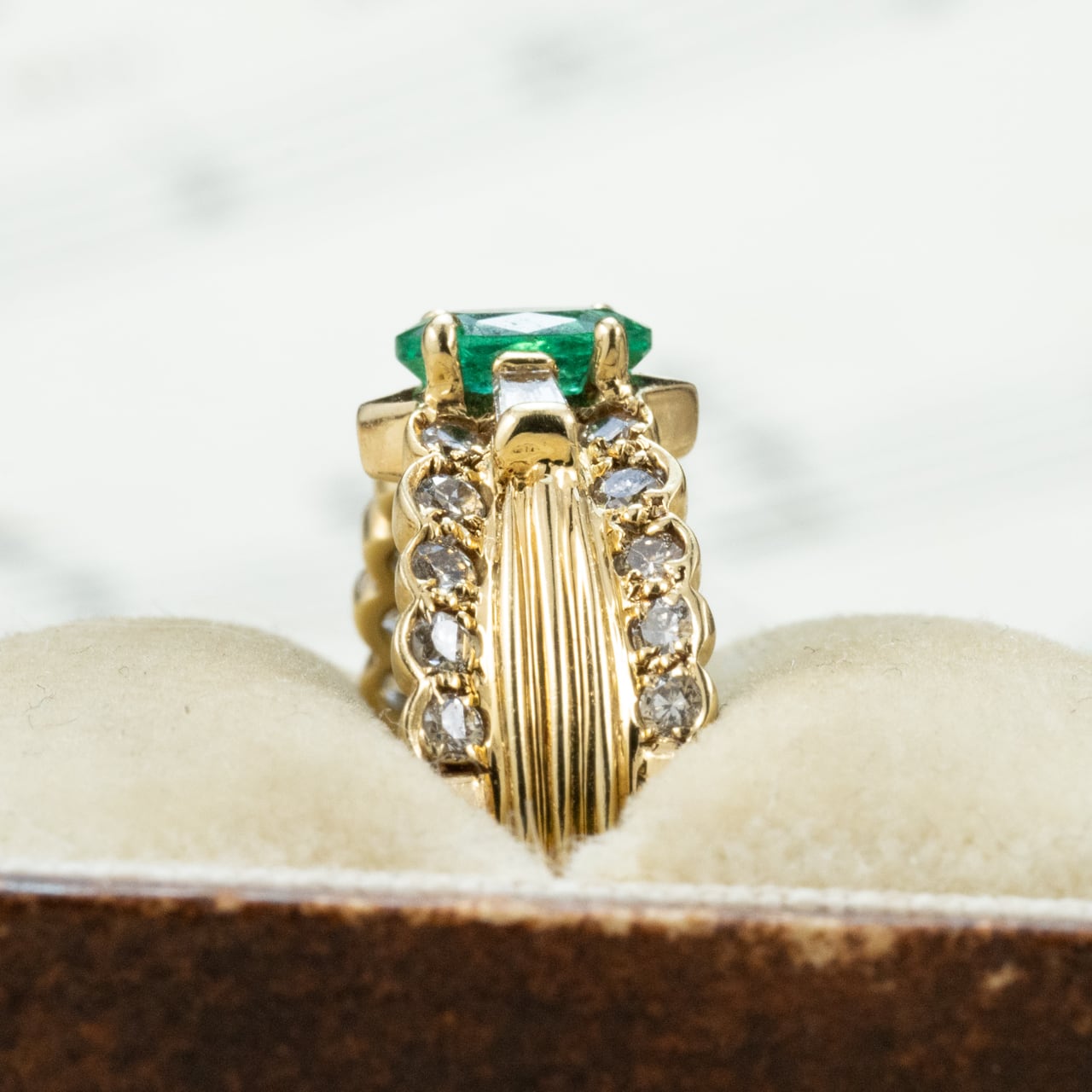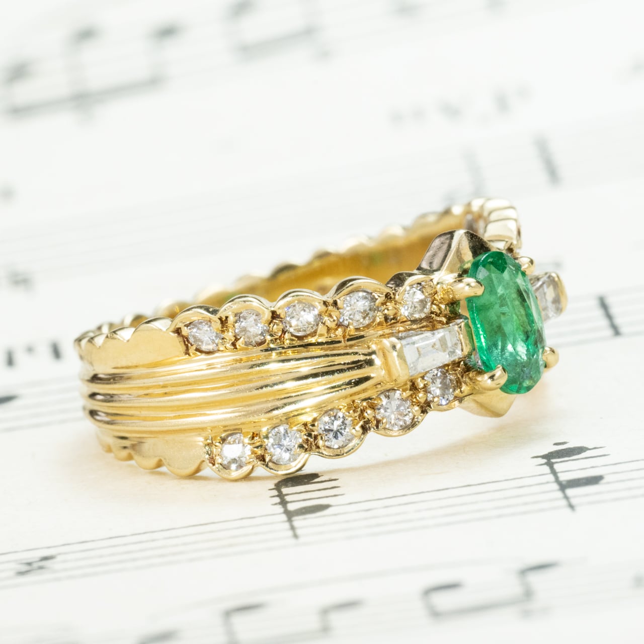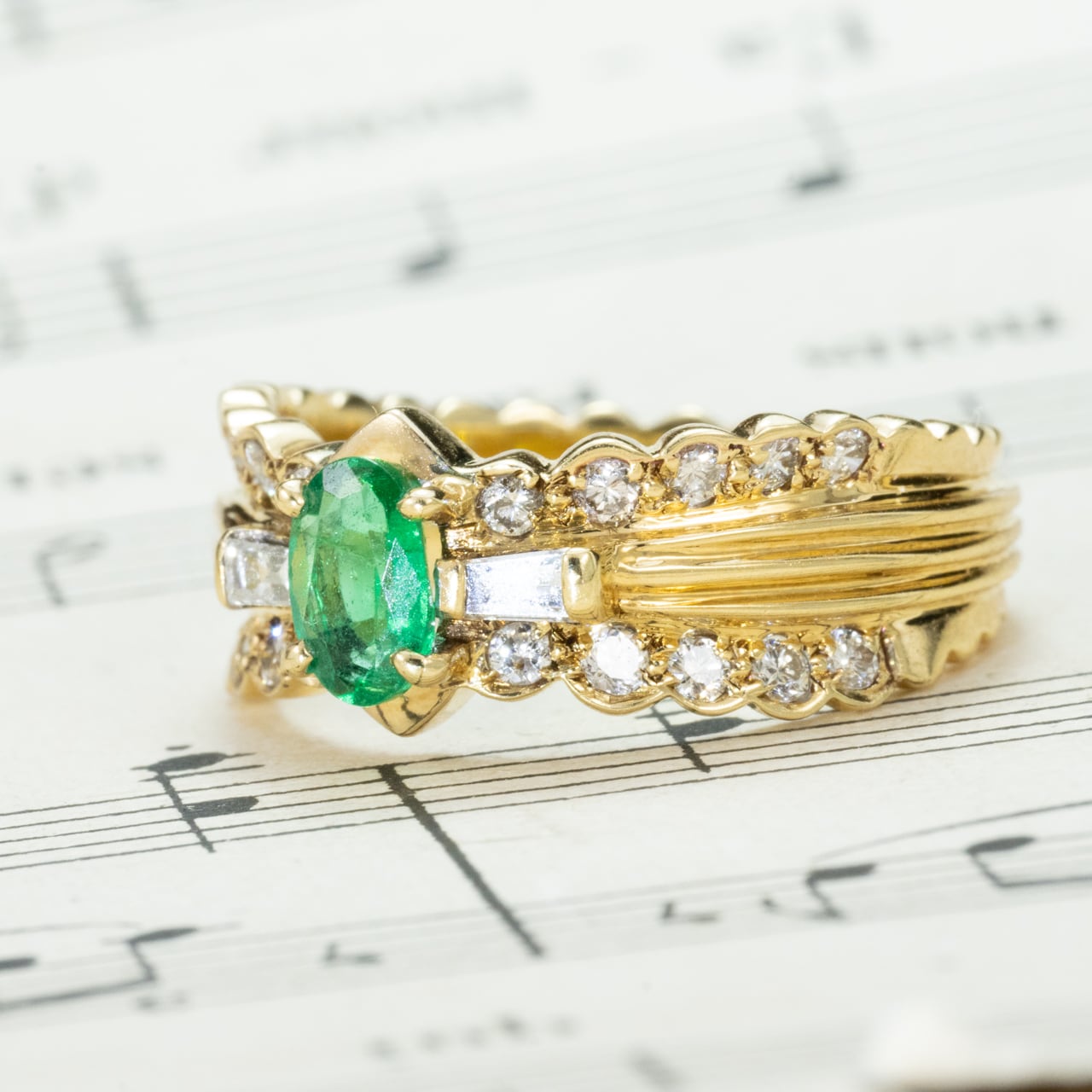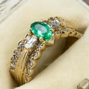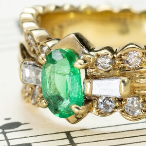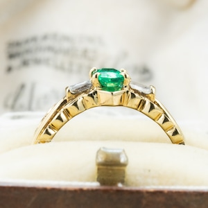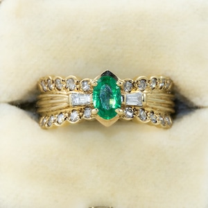 可愛らしさと気品を併せ持つ、エレガントなヴィンテージエメラルドリング。