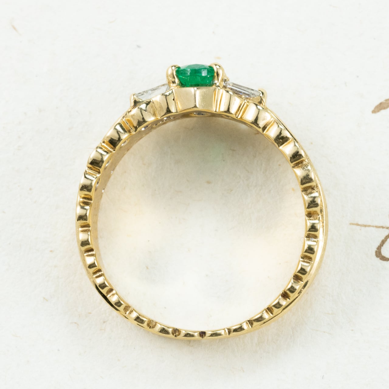 エメラルド リング K18 0.37ct ダイヤモンド 0.44ct リボンデザイン ヴィンテージ|東京 門前仲町 Daisy Ring CHR02038