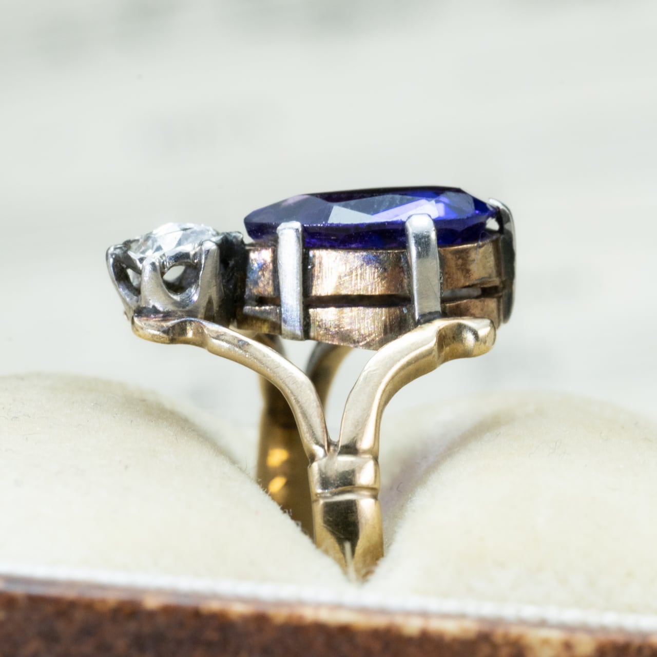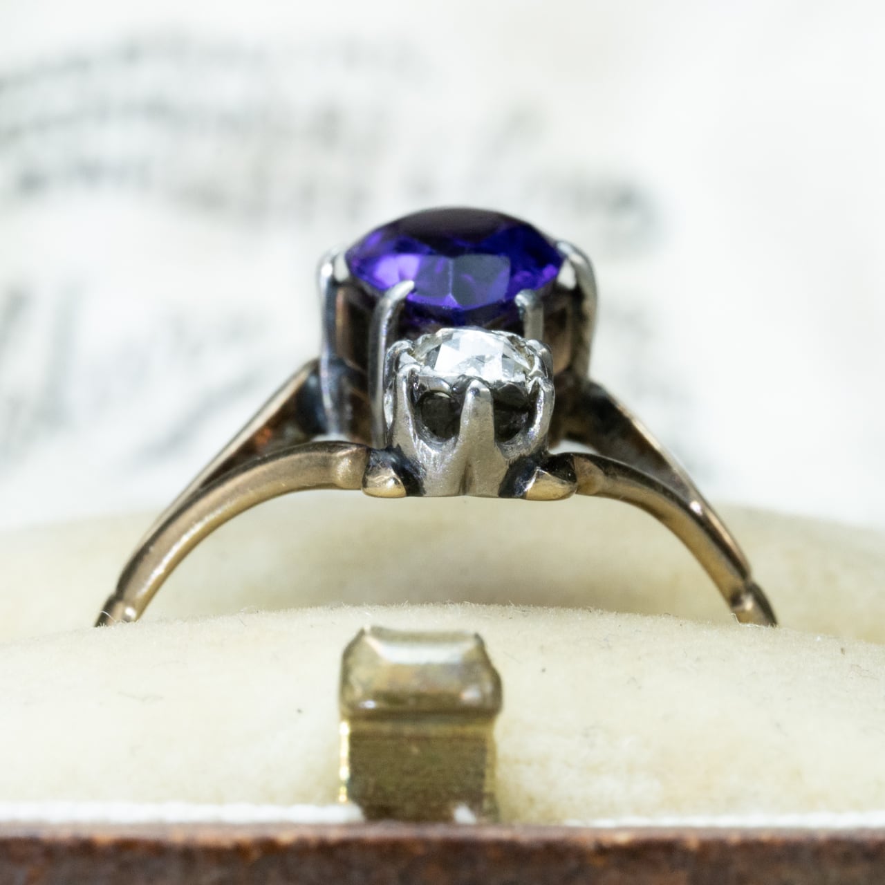 王冠の様やティアラの様なフォルムが美しいアメジストとローズカットダイヤのアンティークリングのご紹介♪