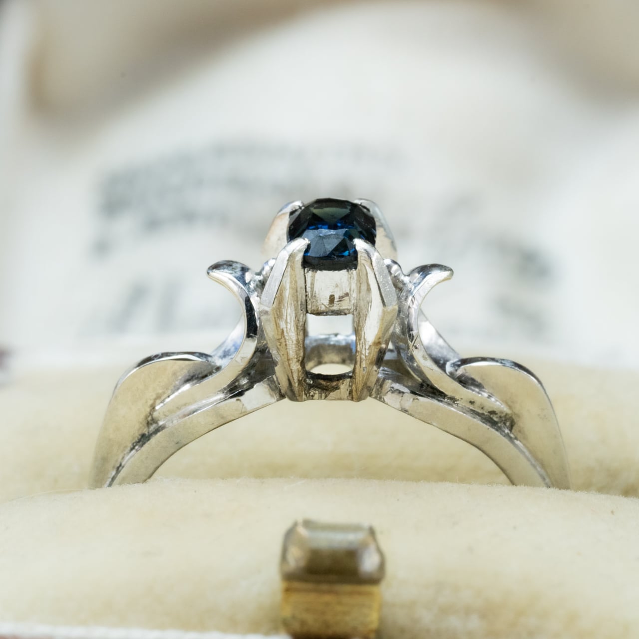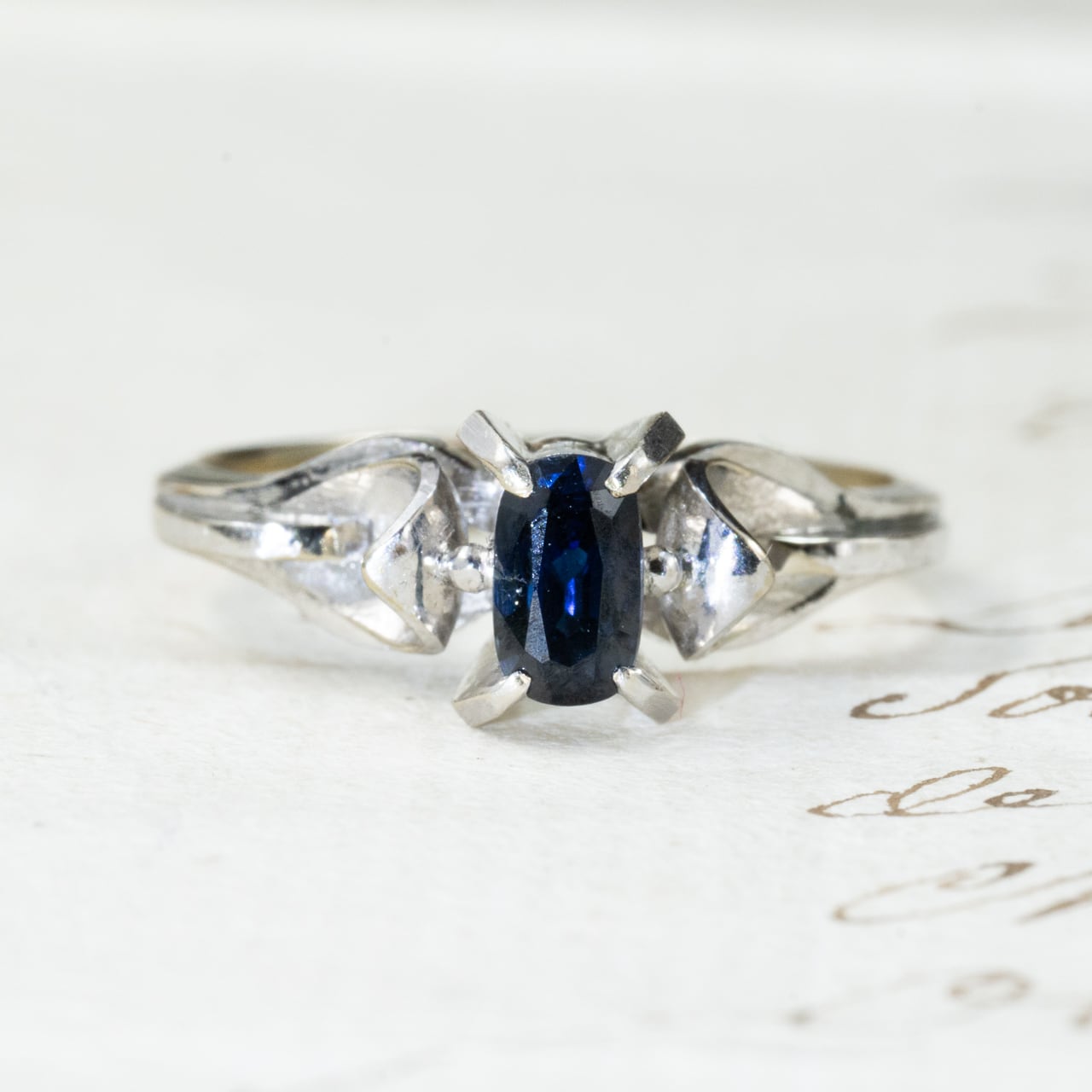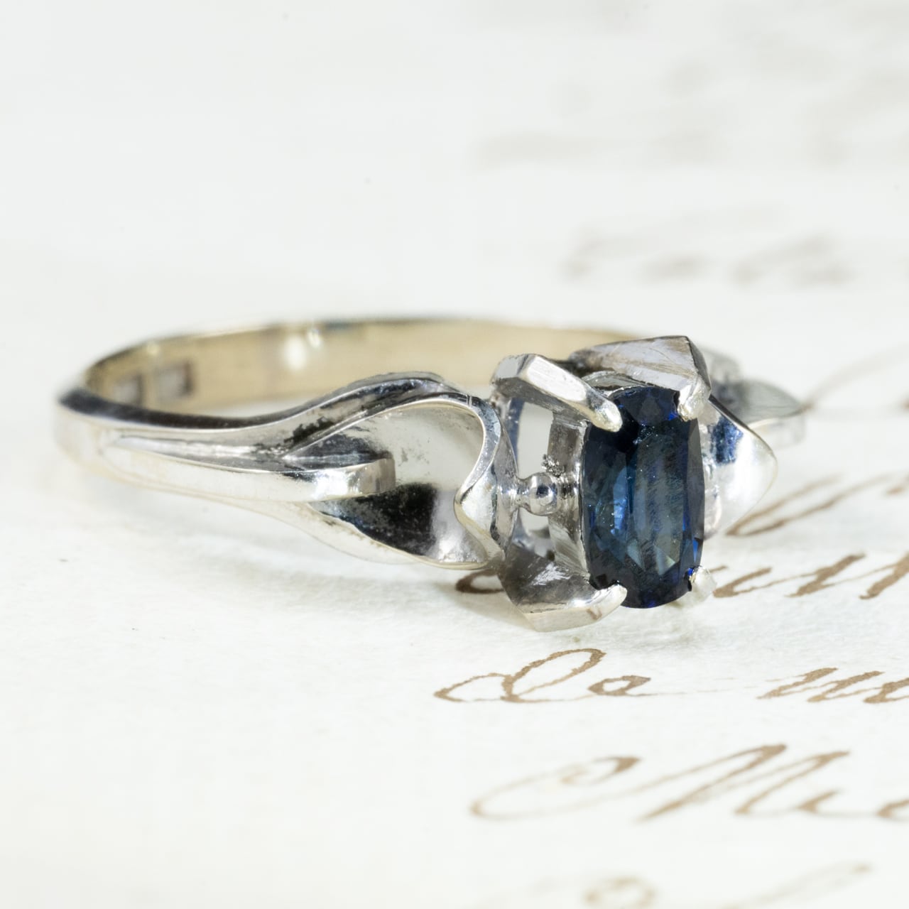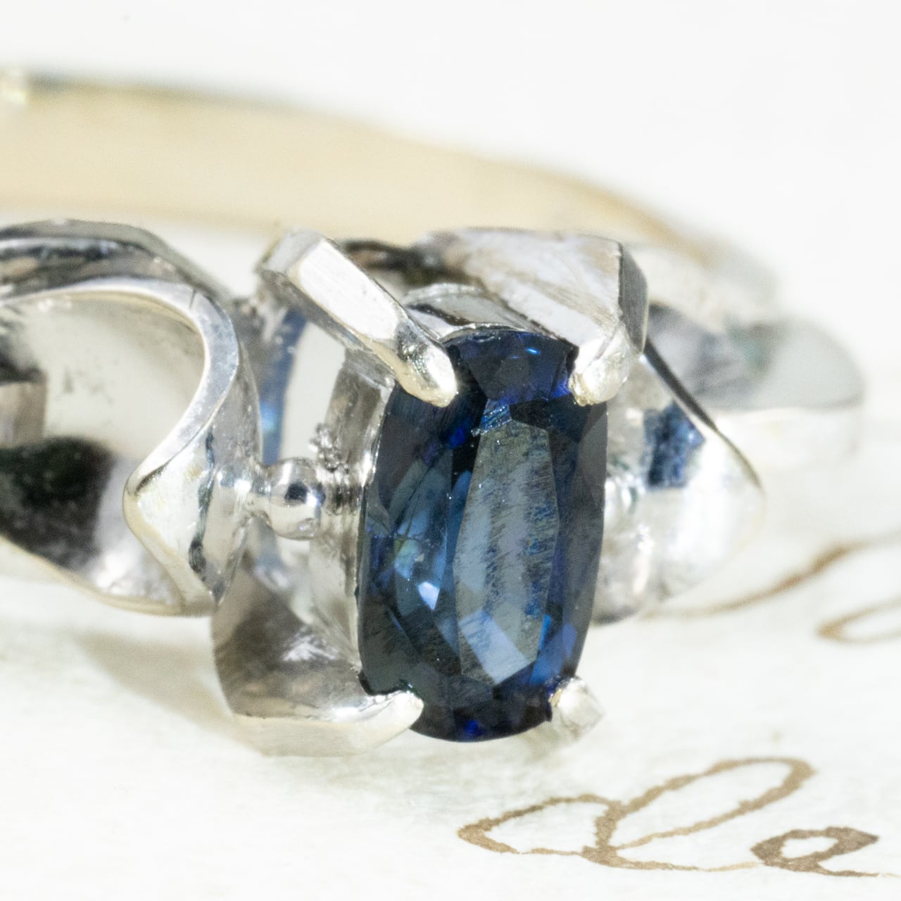 サファイアリング 0.52ct K14WG 昭和レトロ 和デコ ヴィンテージ 指輪 青石 クールデザイン MOR00619