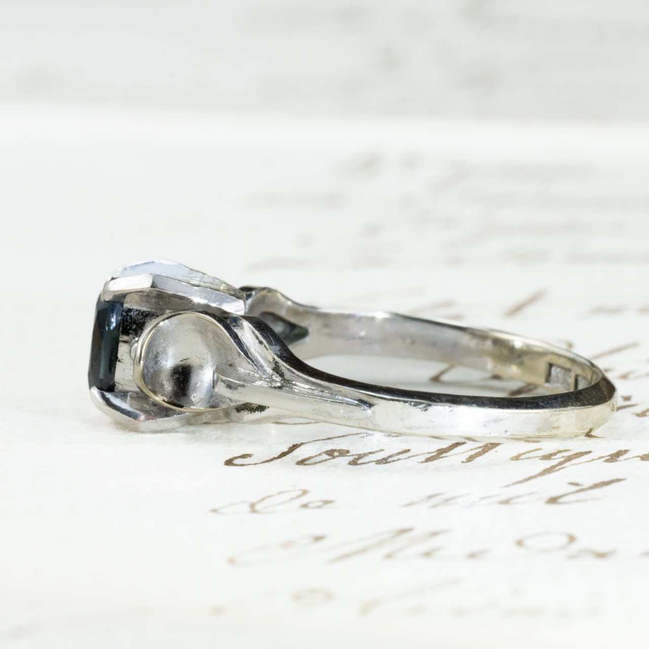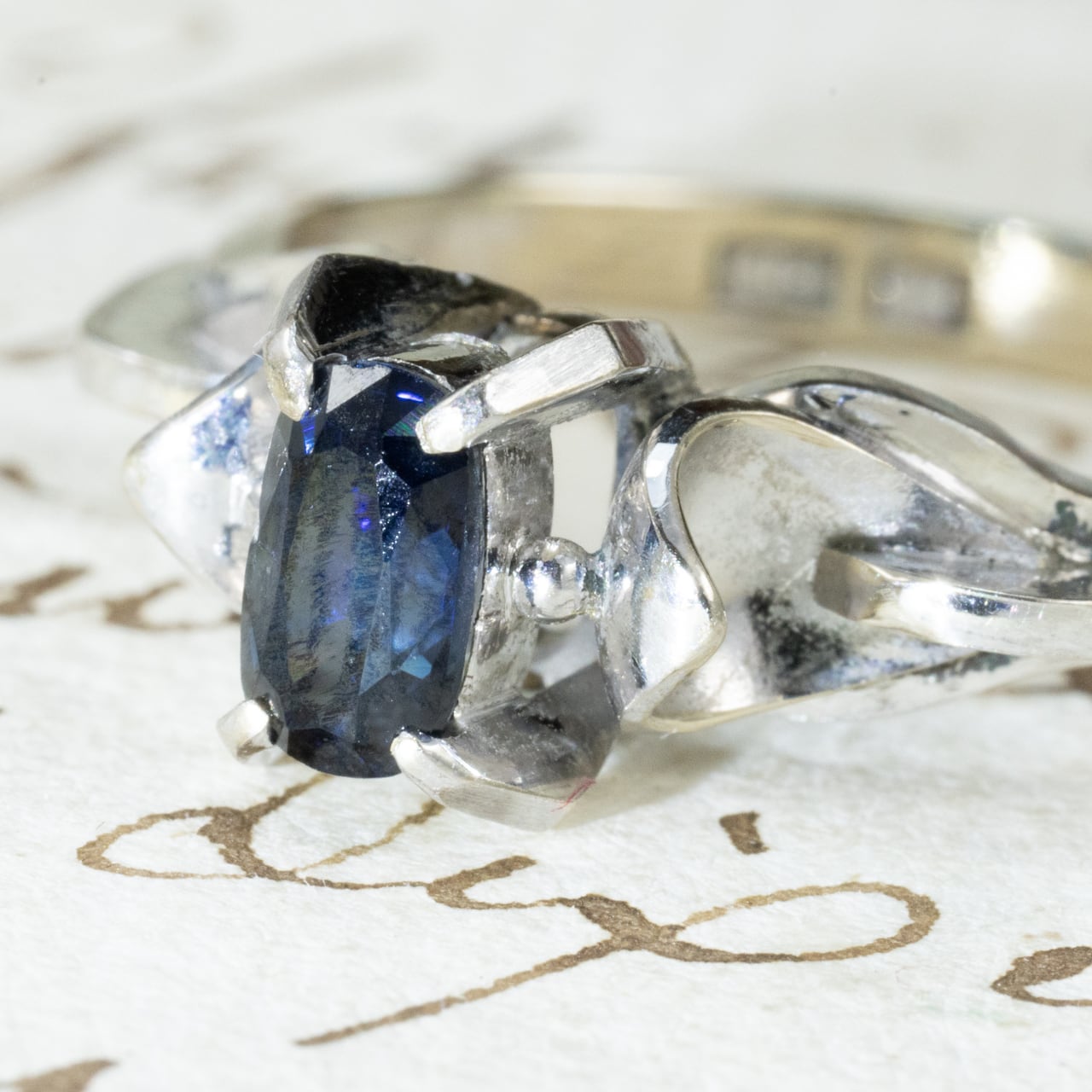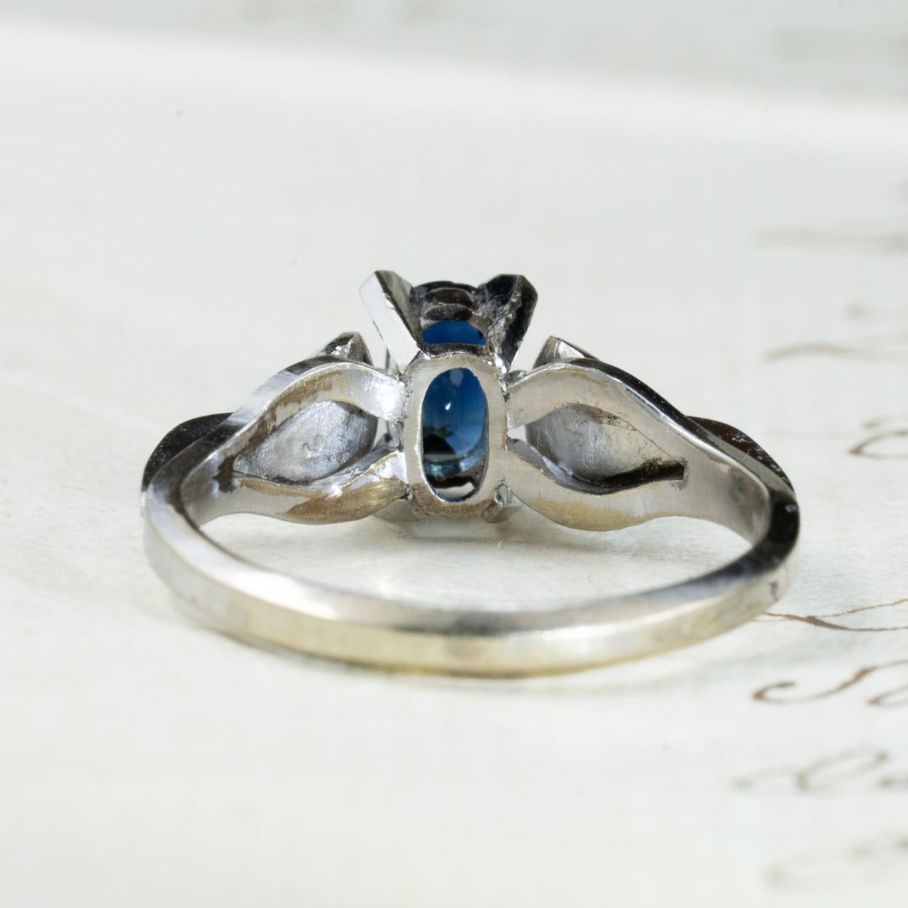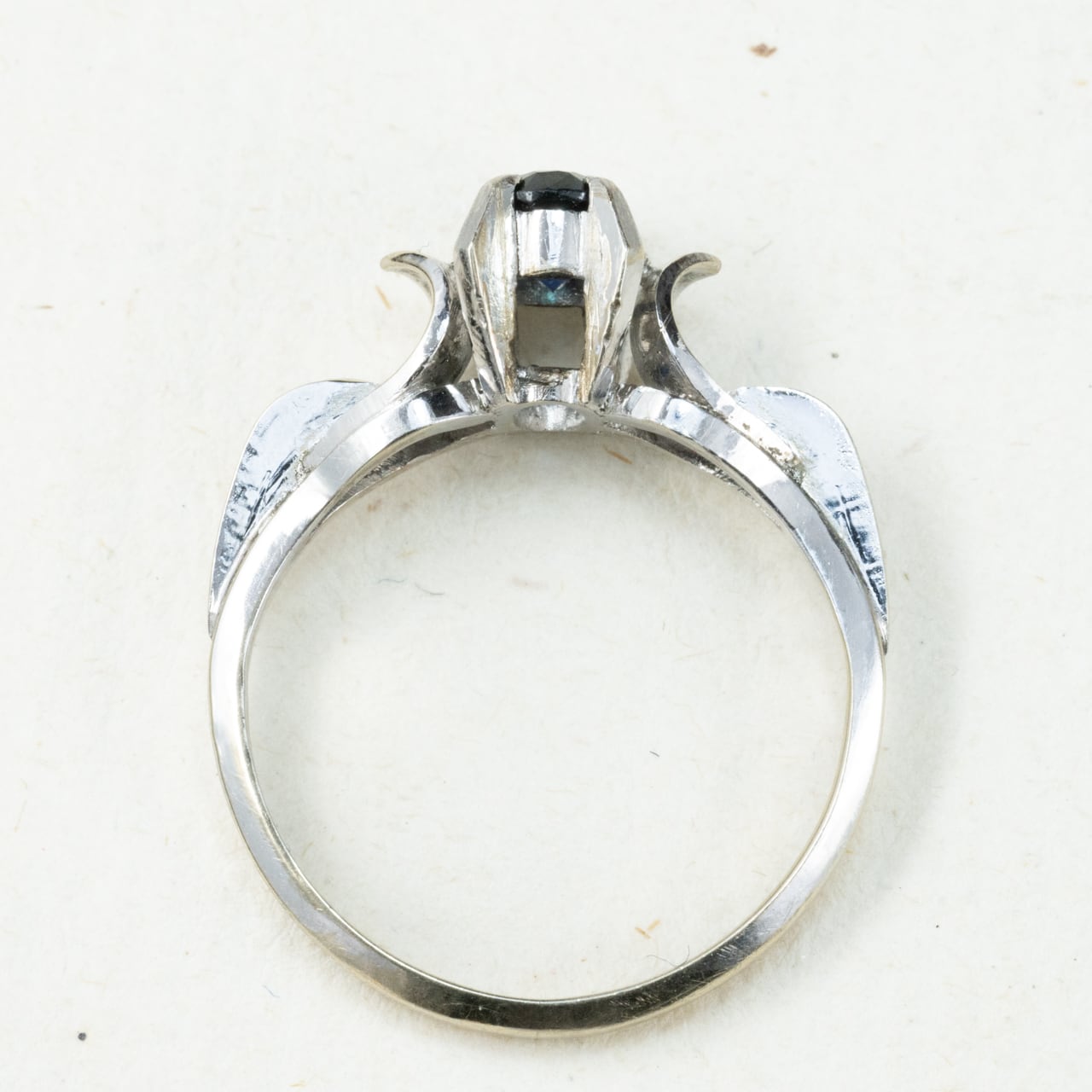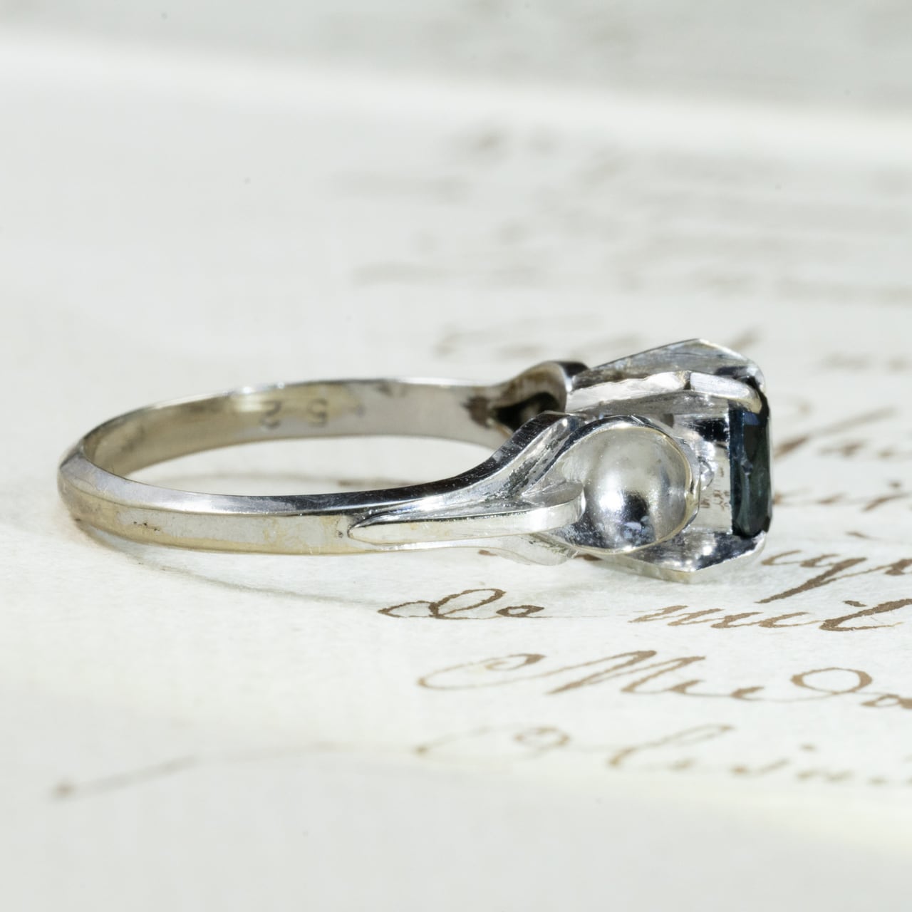 サファイアリング 0.52ct K14WG 昭和レトロ 和デコ ヴィンテージ 指輪 青石 クールデザイン MOR00619