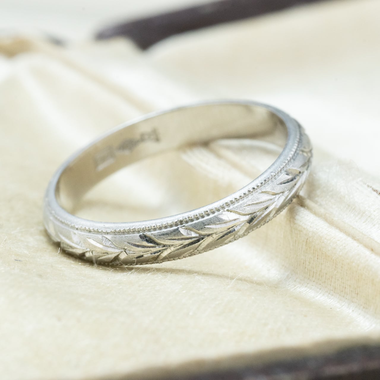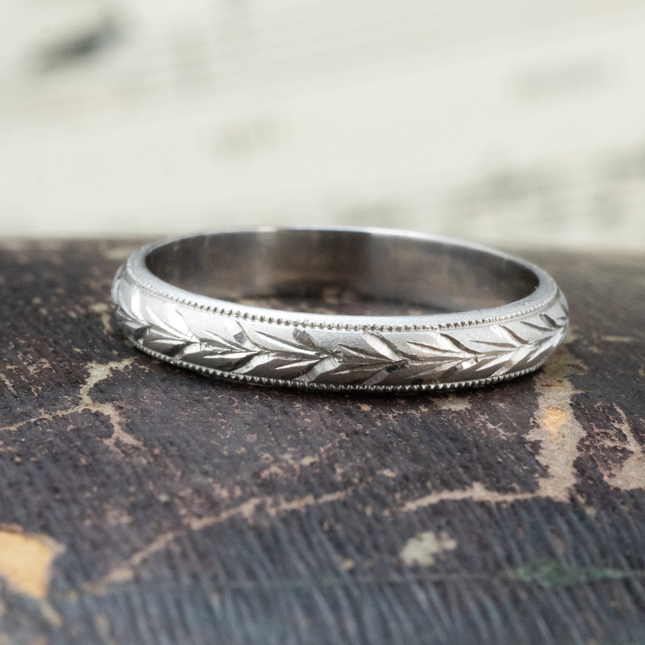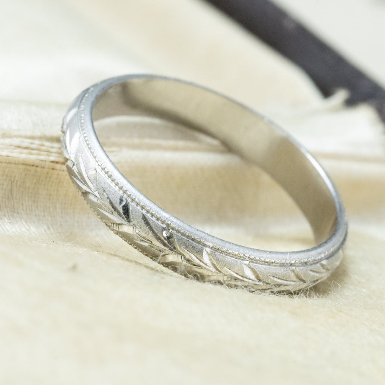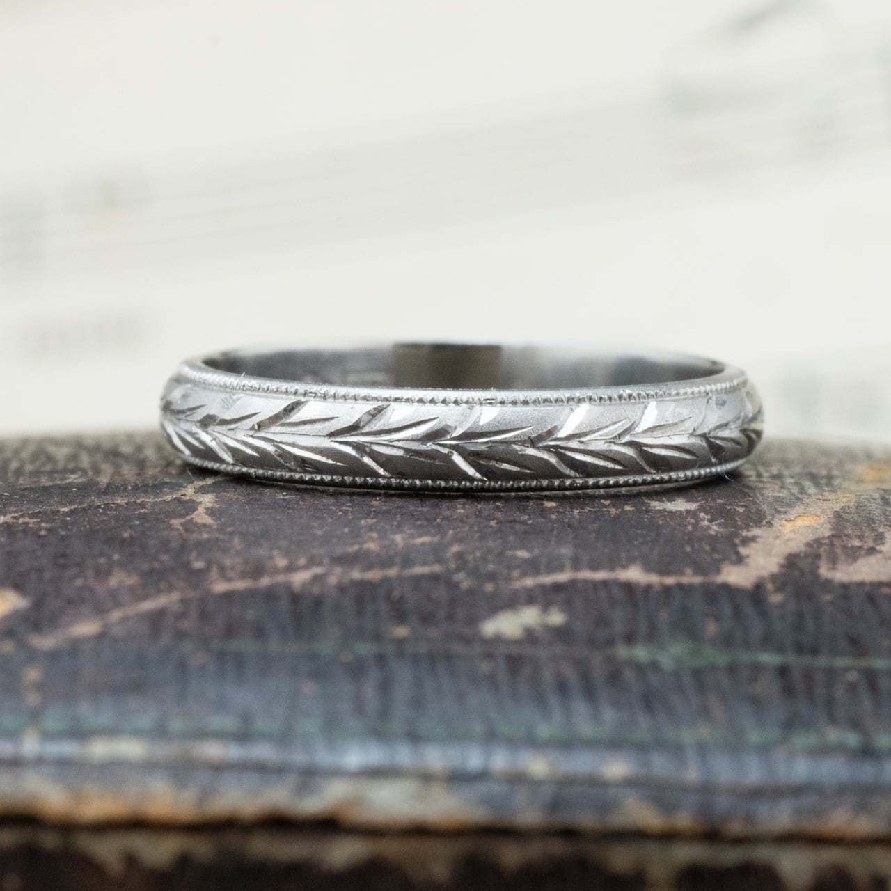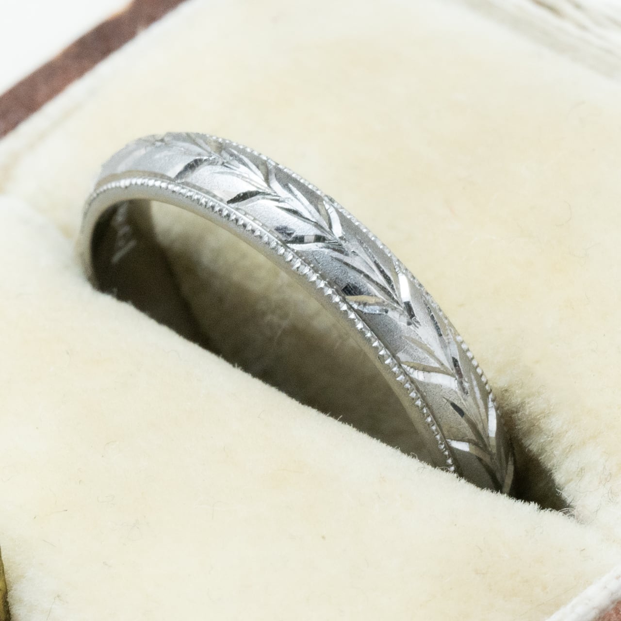 昭和ジュエリー 昭和レトロ 月桂樹 和彫 総柄 手彫り リング Pt900 MOR00646