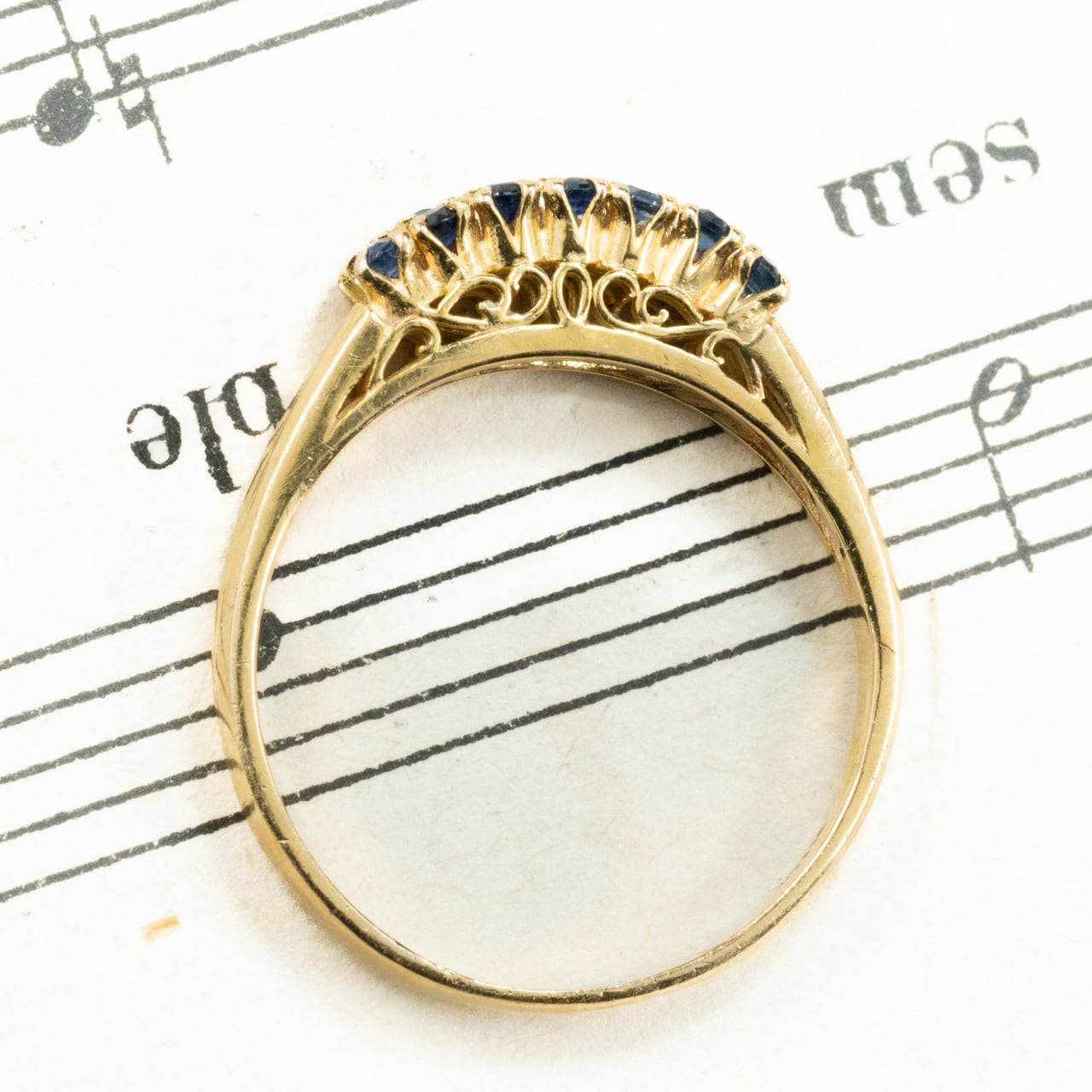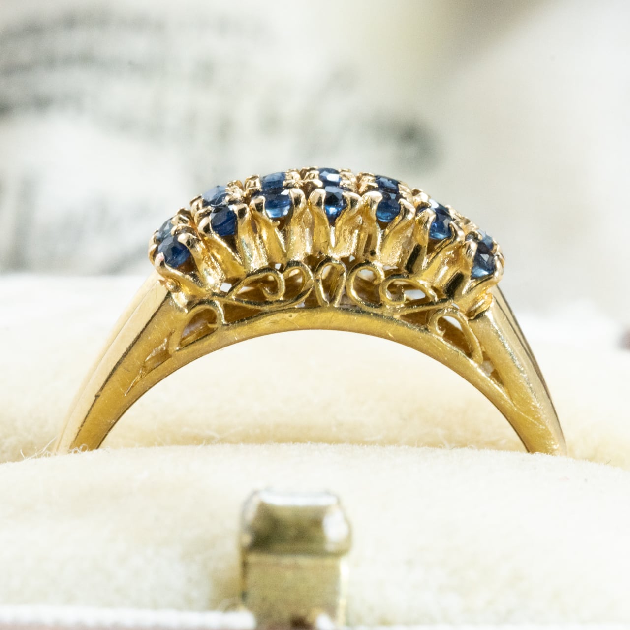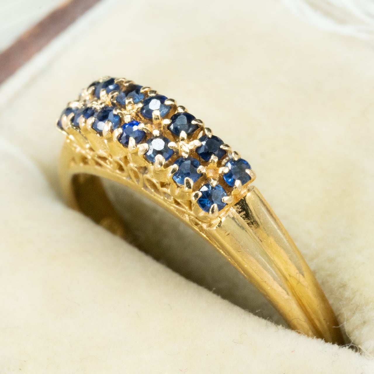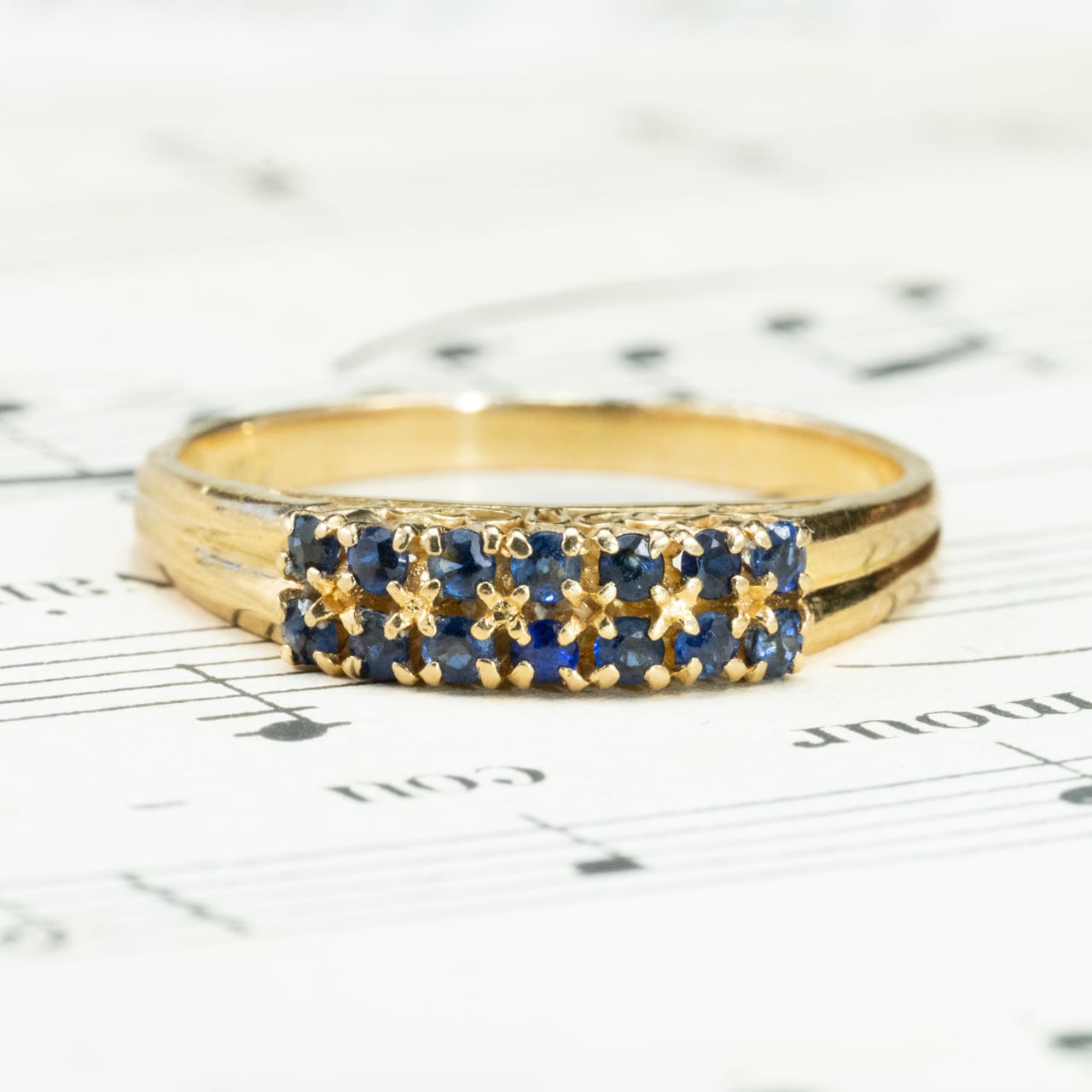 16石のサファイアが美しく並ぶ、昭和レトロのヴィンテージリングのご紹介です。