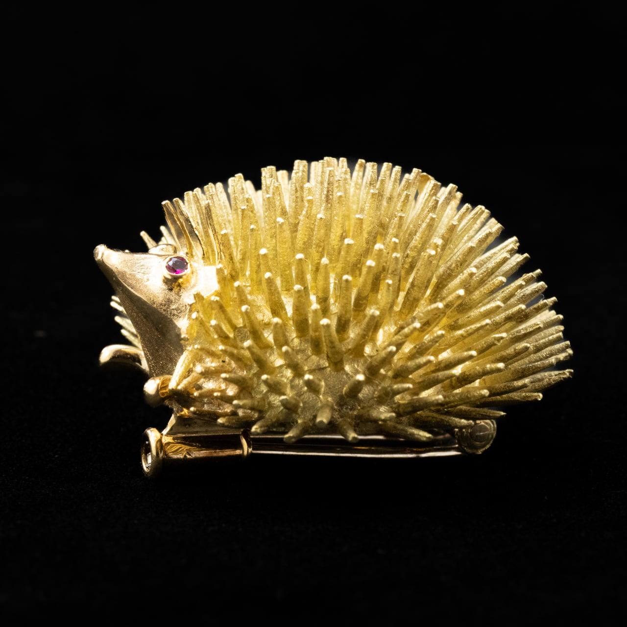フランス ジュエリー K18 ルビー イーグルヘッド ハリネズミ ヘッジフォッグ アニマル モチーフ ブローチ MOBR00038