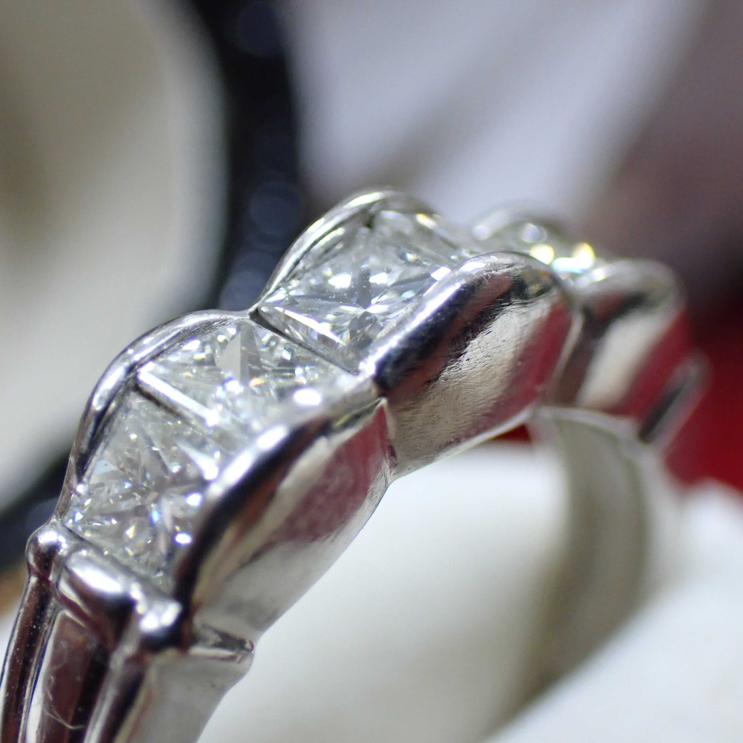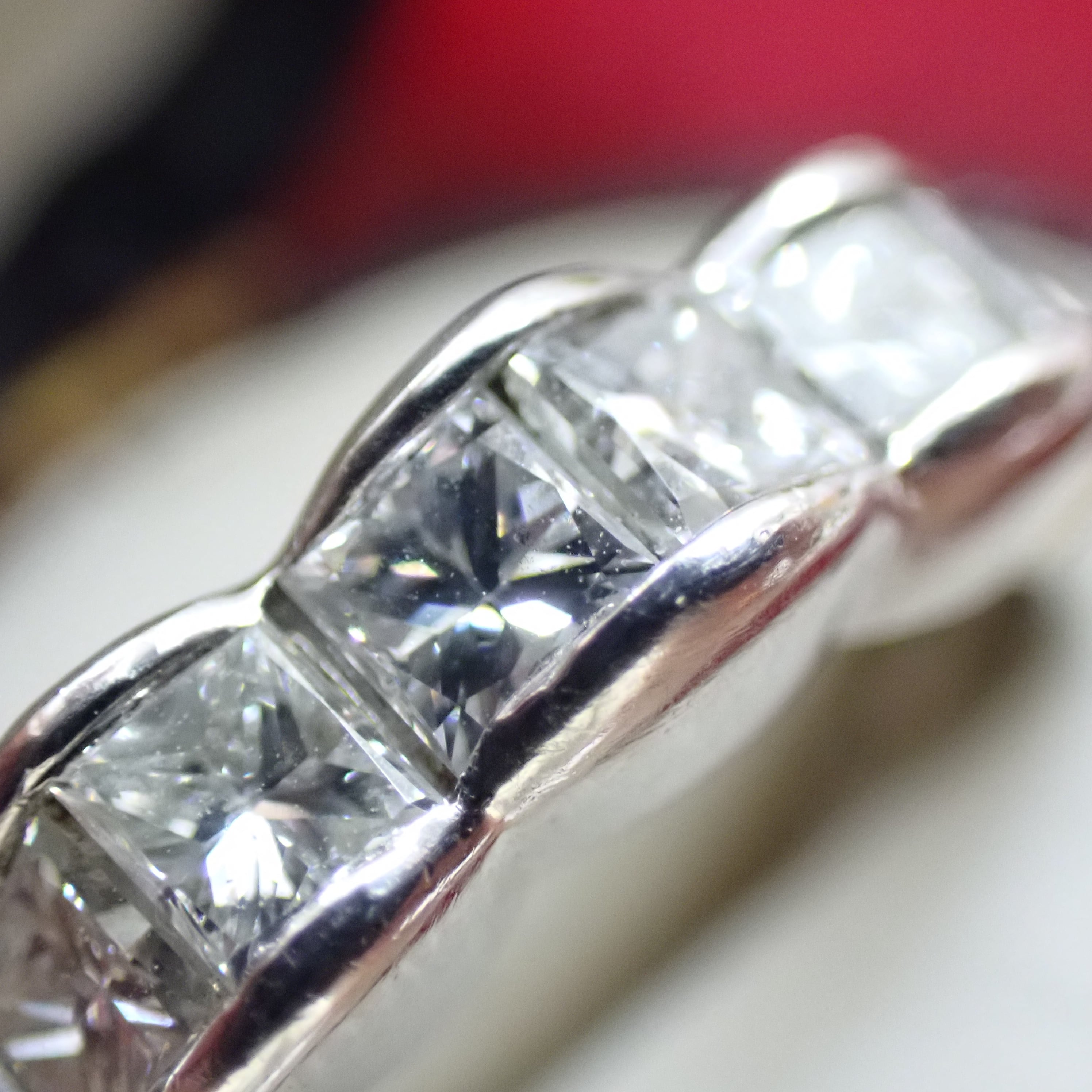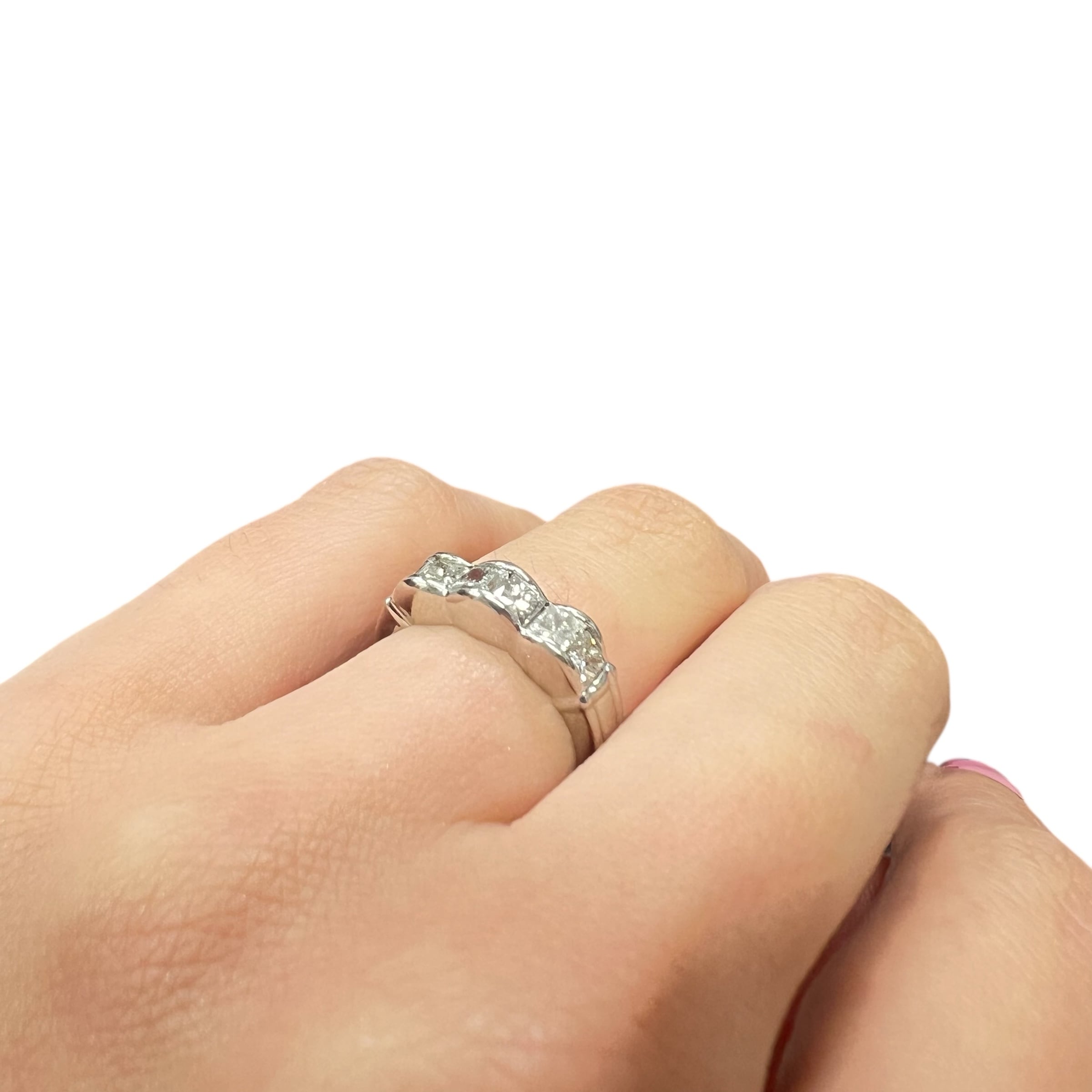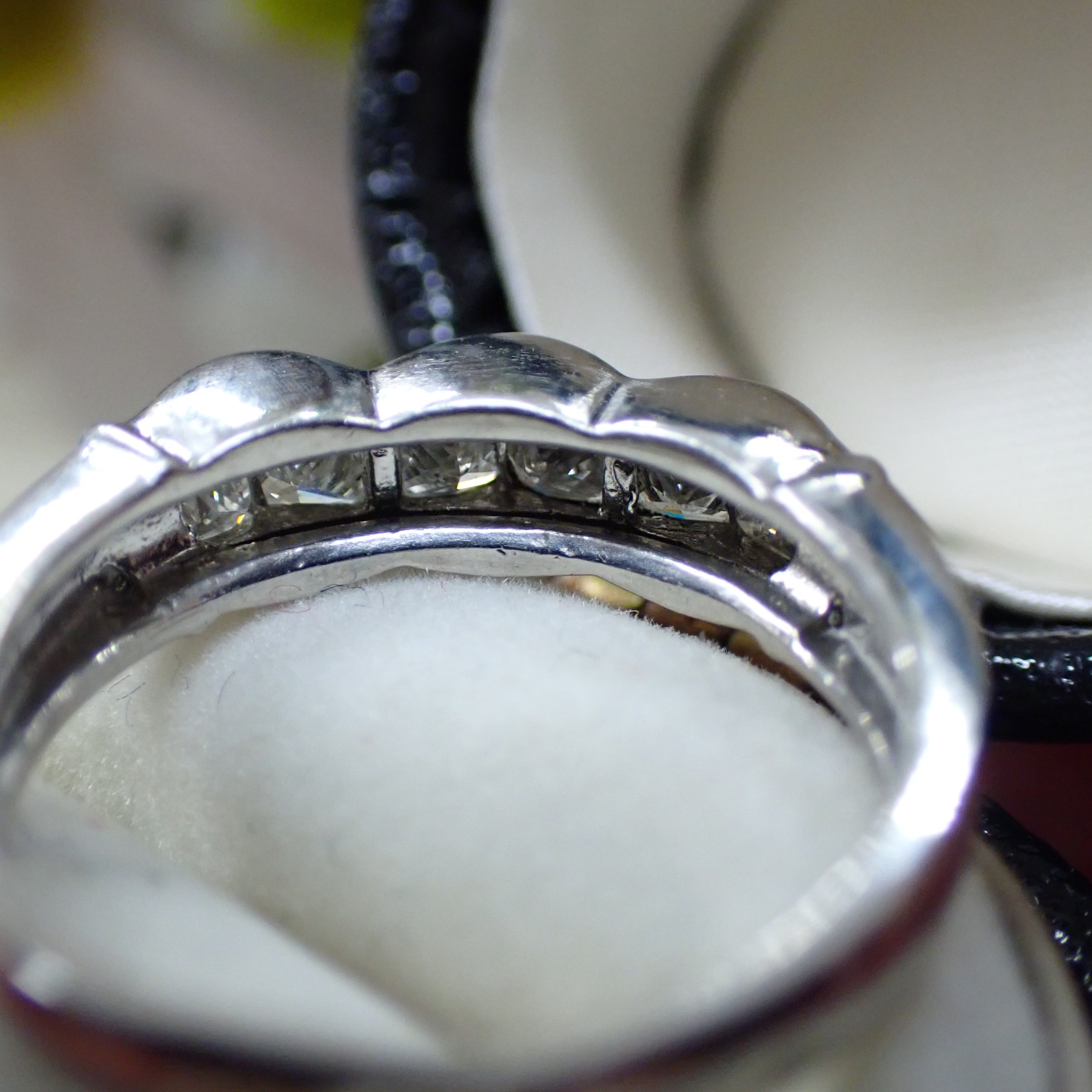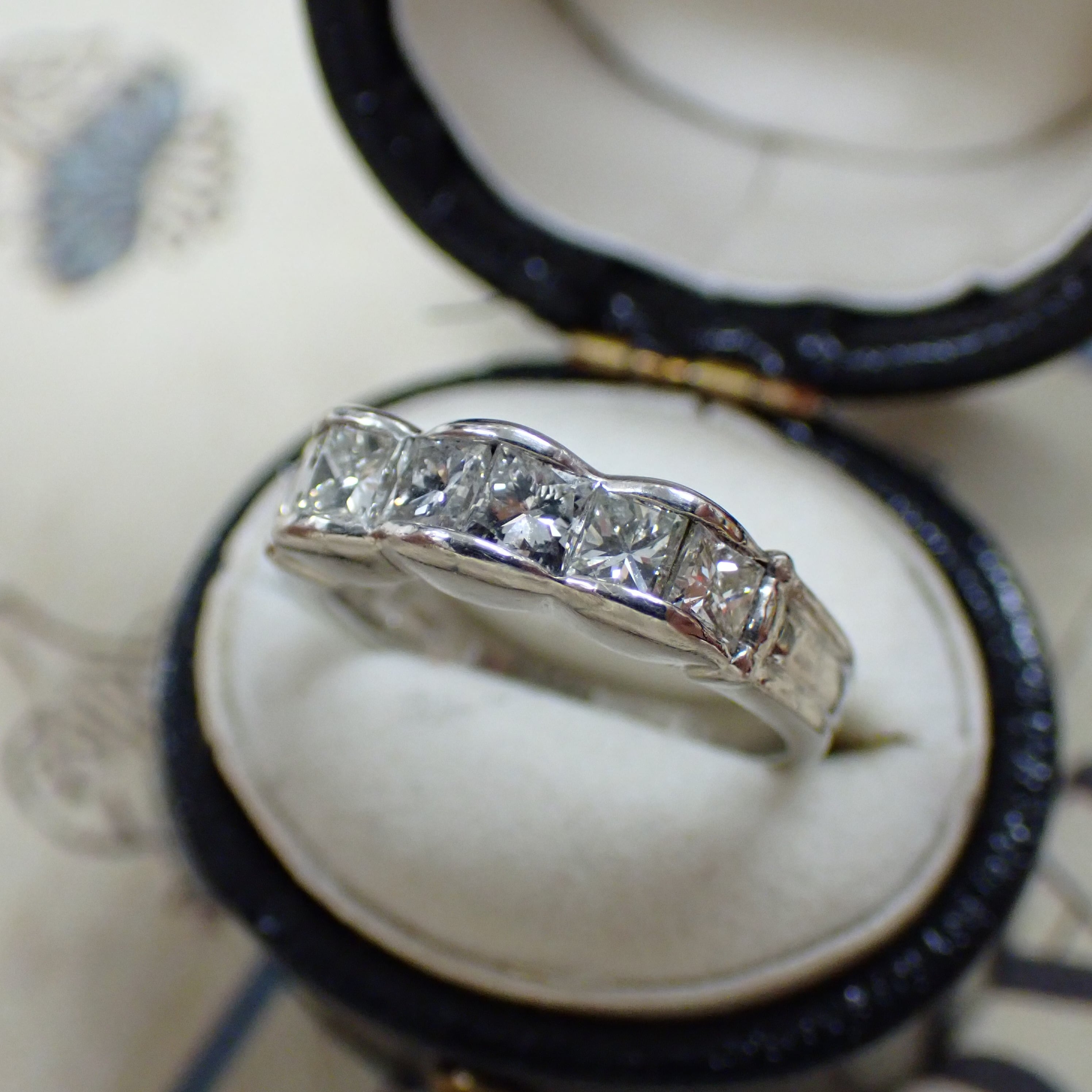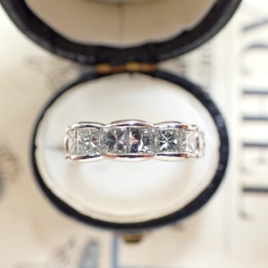 Pt900 昭和レトロ ダイヤモンド リング バケットカット 山形セッティング 変形配置 一文字風 ゴージャスデザイン ~光のリズムを纏うリング~ MR00756 Daisy Ring 東京 門前仲町