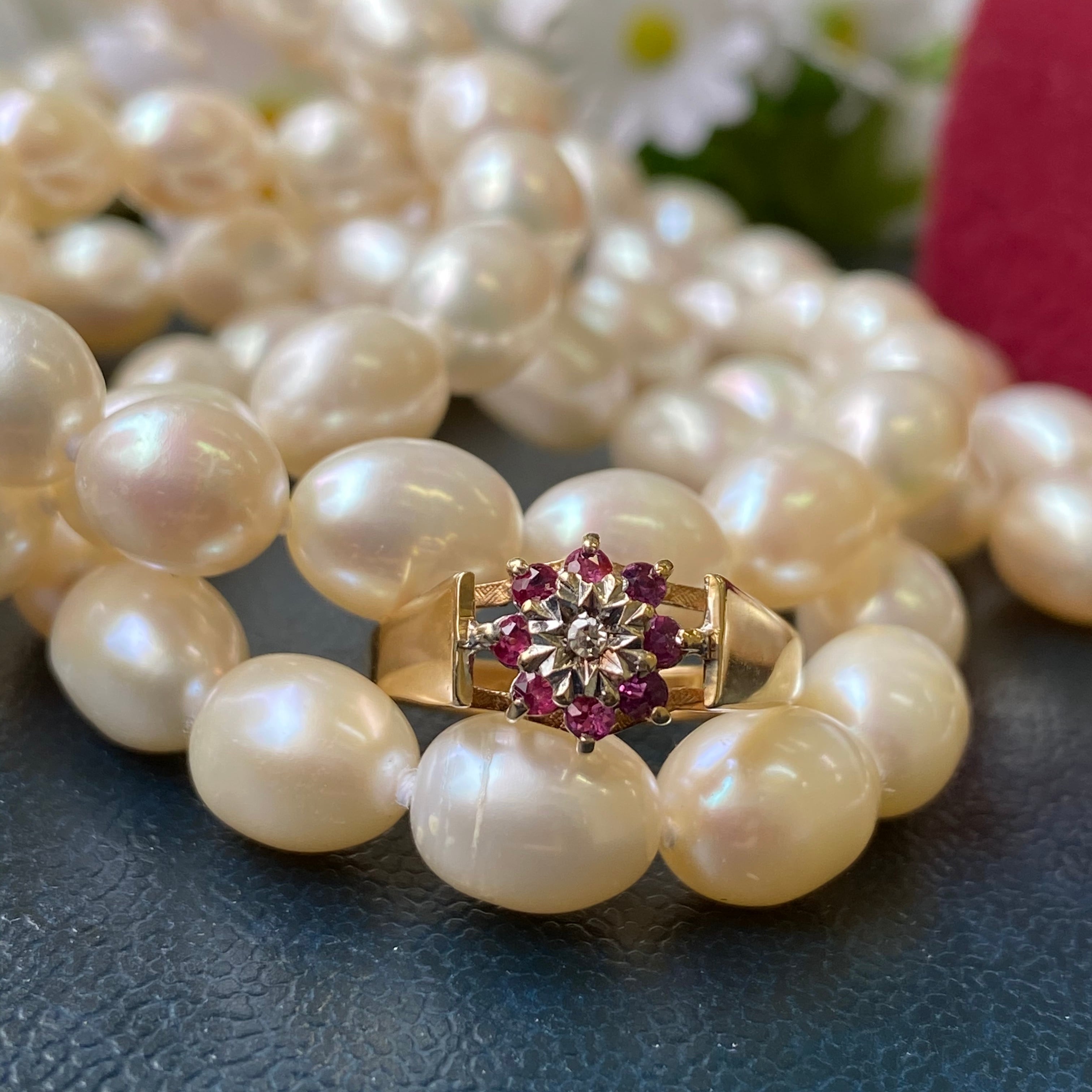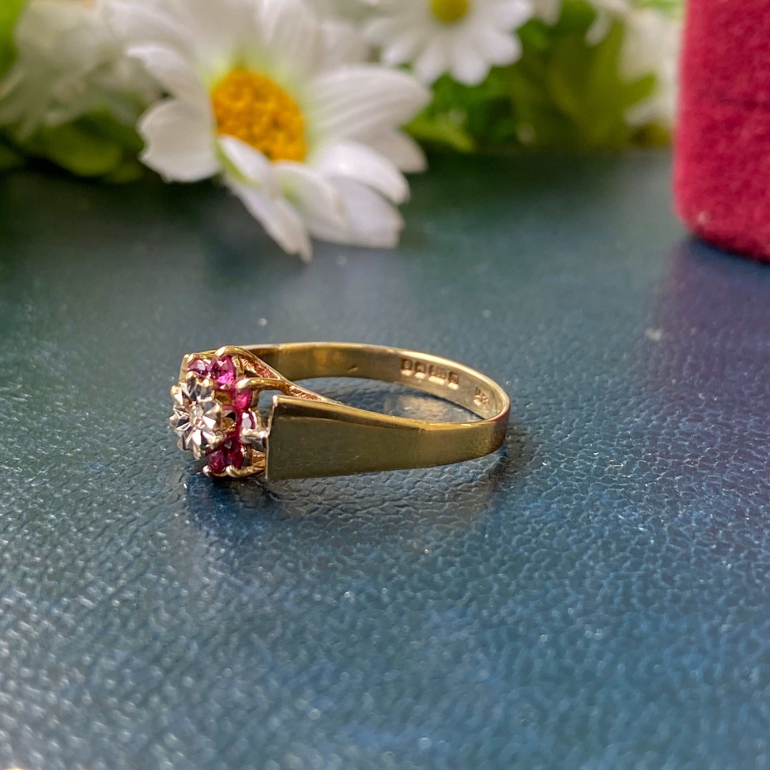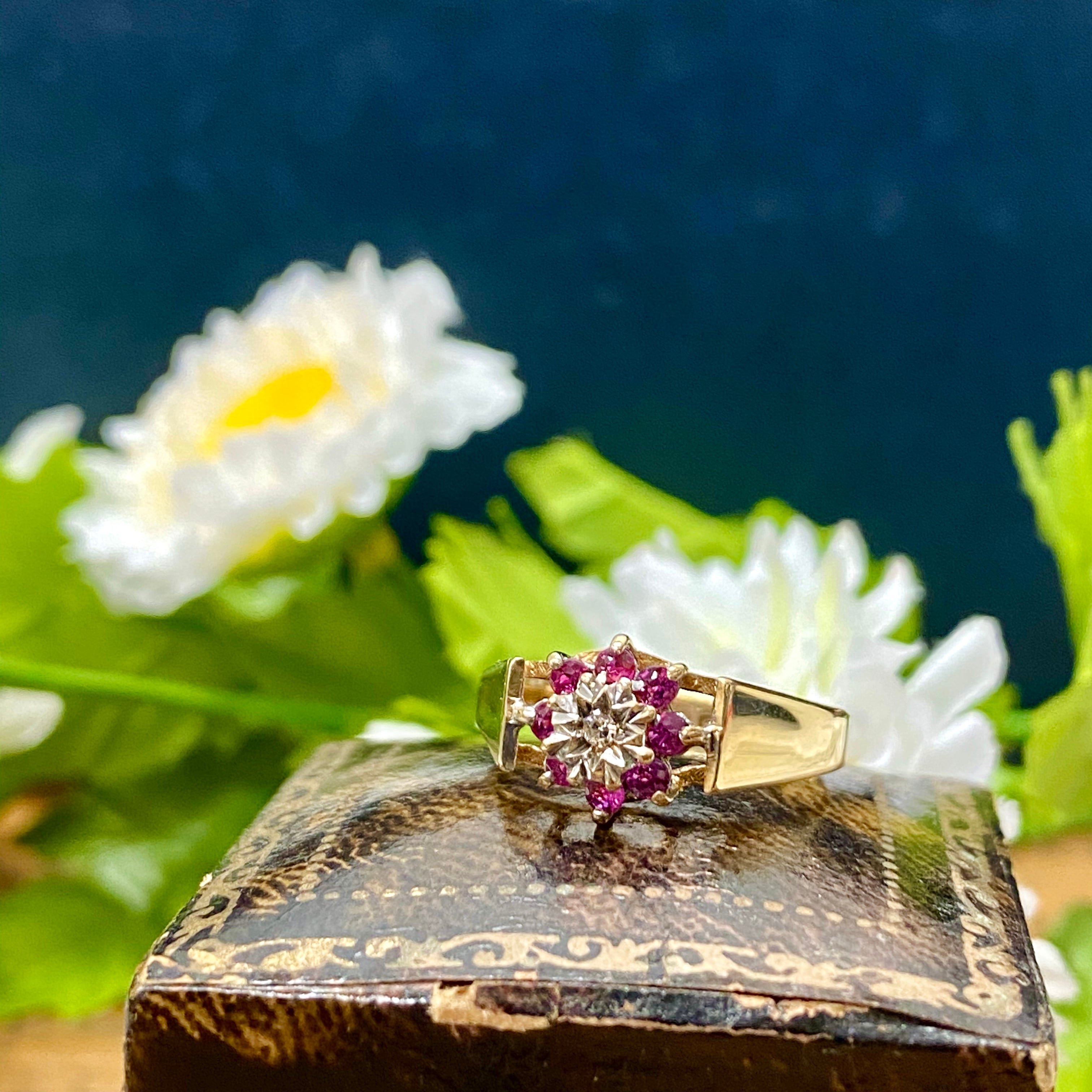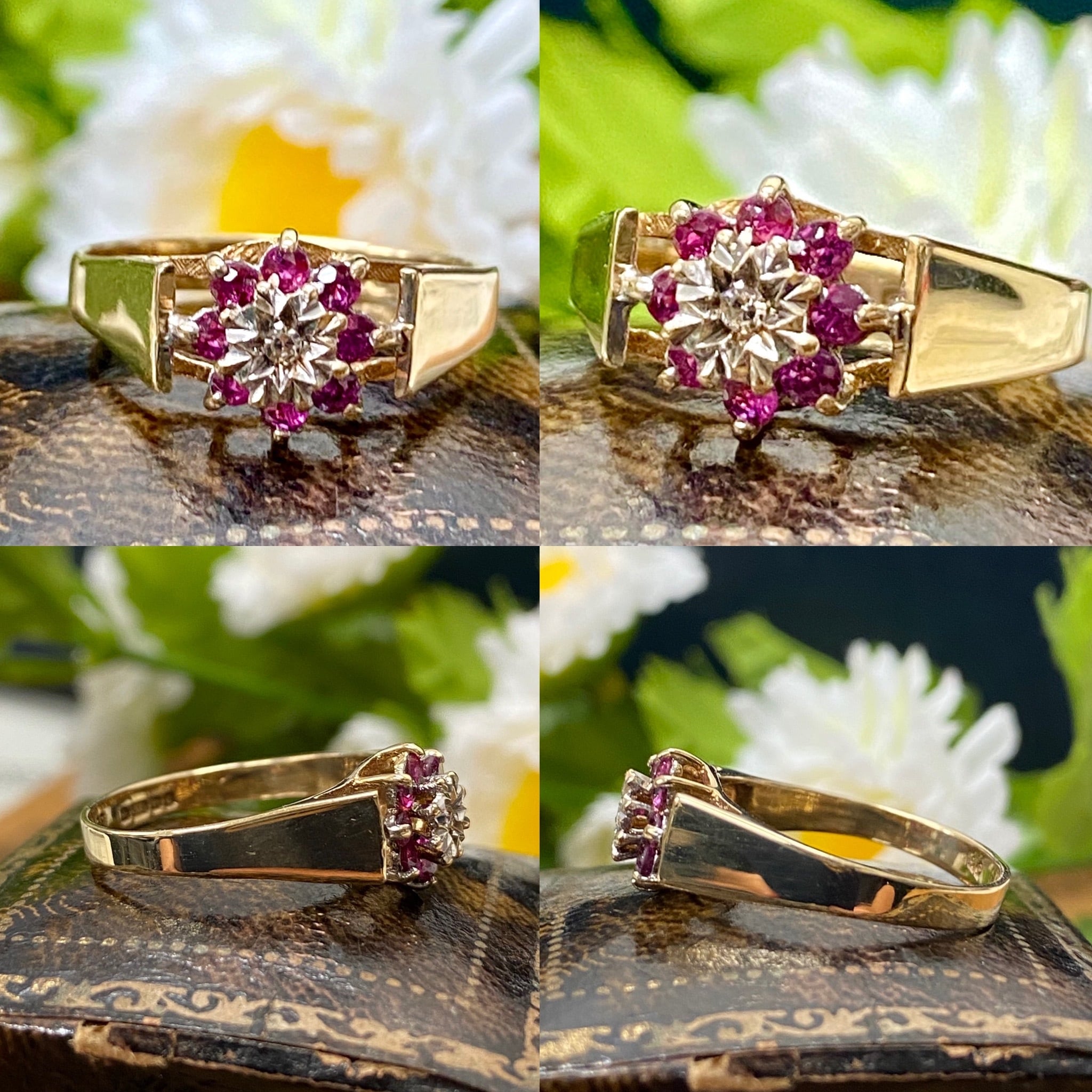 SALE!クーポン併用可♪イギリスヴィンテージリング♪ルビーダイヤモンドデイジーリング/K9/13号