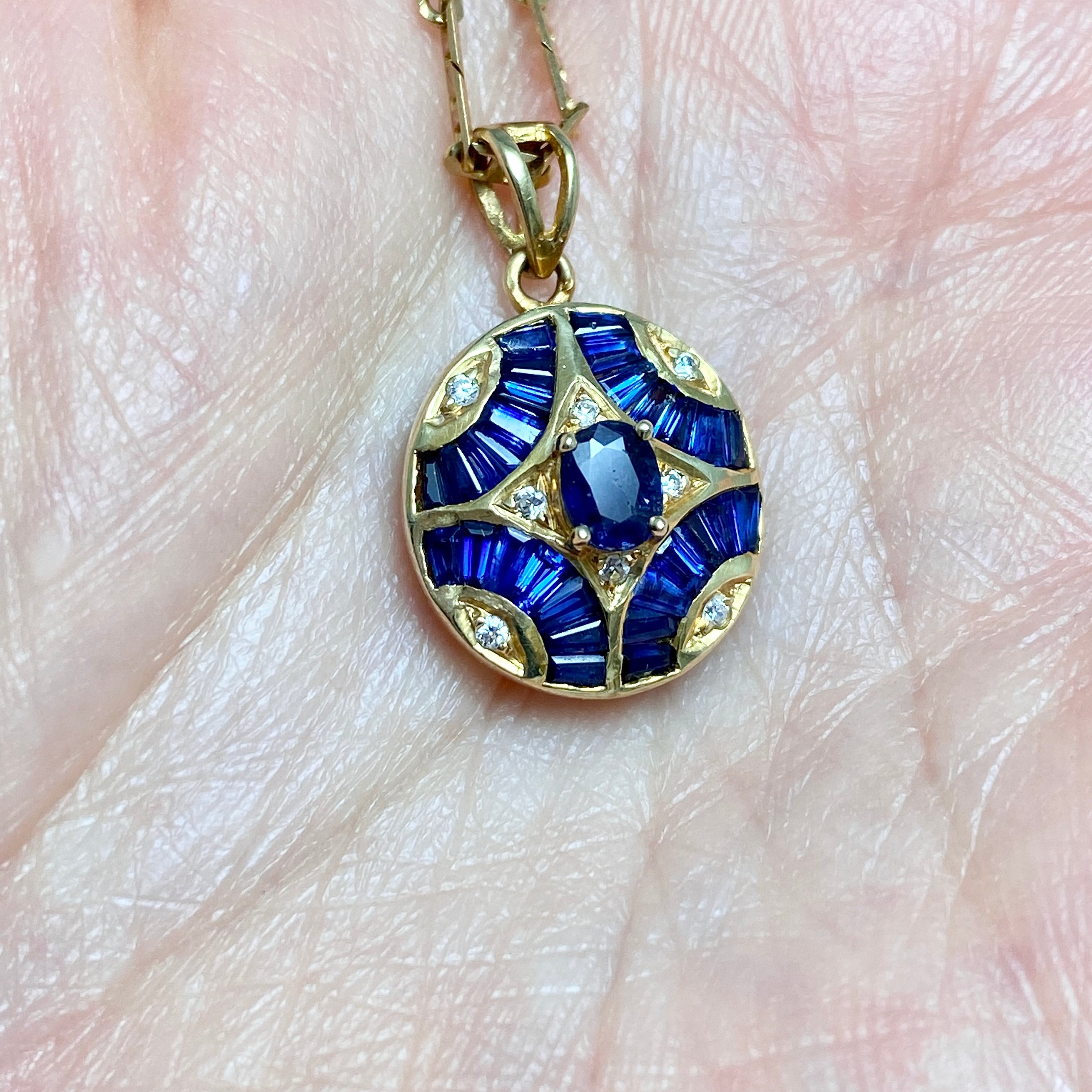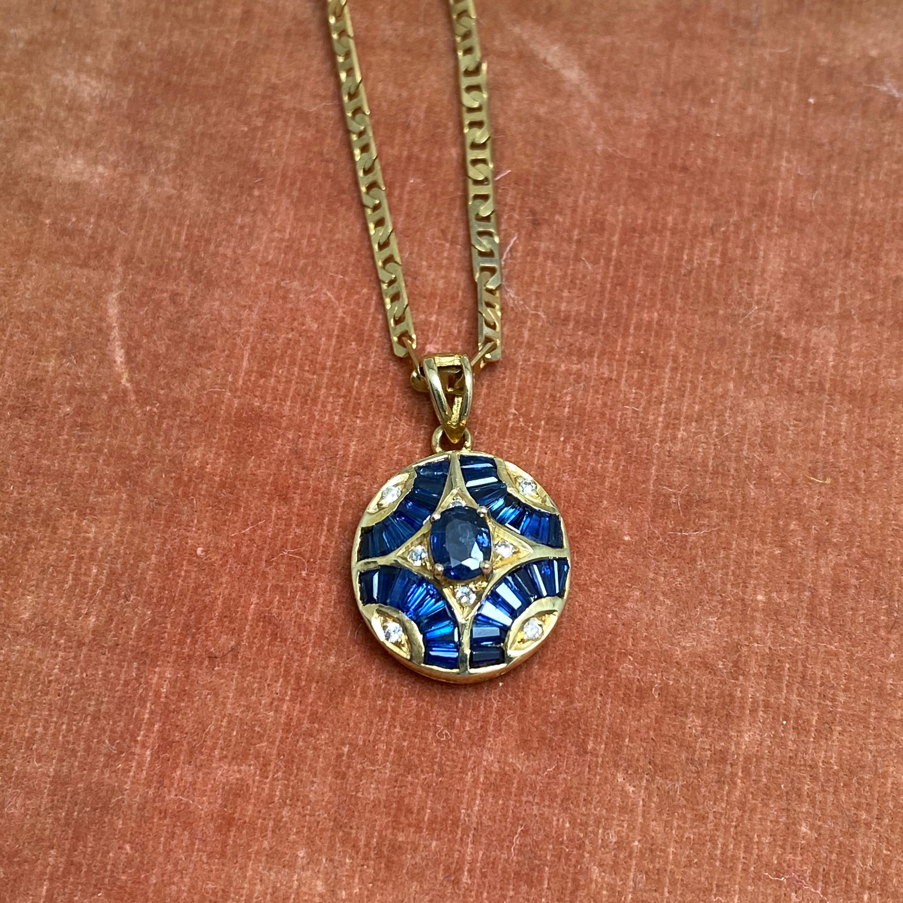 イタリア 紺碧のサファイアの輝き ハンサムなヴィンテージ ペンダント