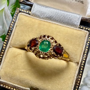 イギリス1903年アンティークリングK18 大きなエメラルド ガーネットの指輪