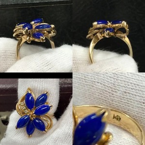 ラピスラズリ&ダイヤモンドの個性的なFlowerリング??