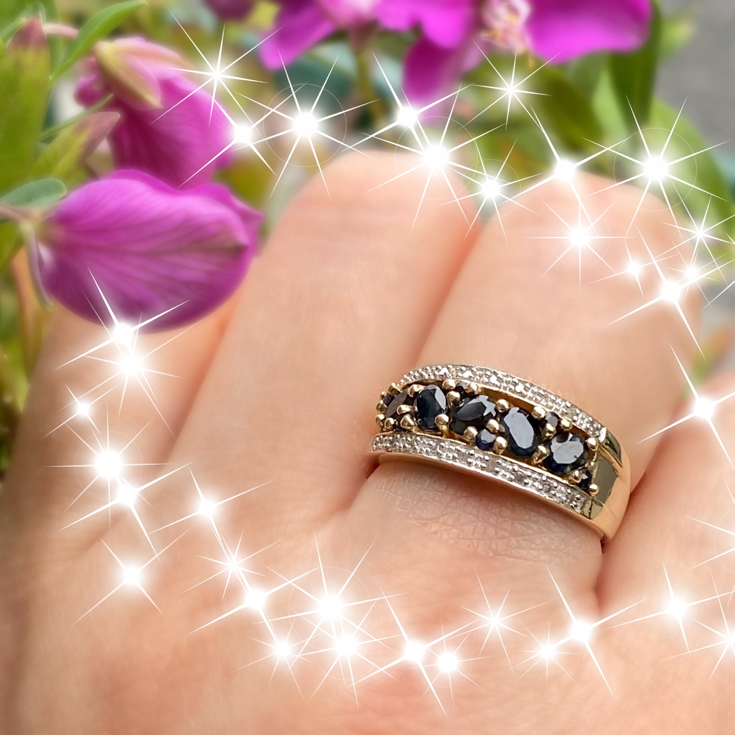 SALE!クーポン併用可♪イギリス1994 セミヴィンテージリング♪サファイア ダイヤモンドリング?