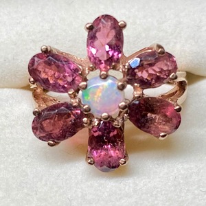 ピンクトパーズとオパールの大きなヴィンテージリングです。