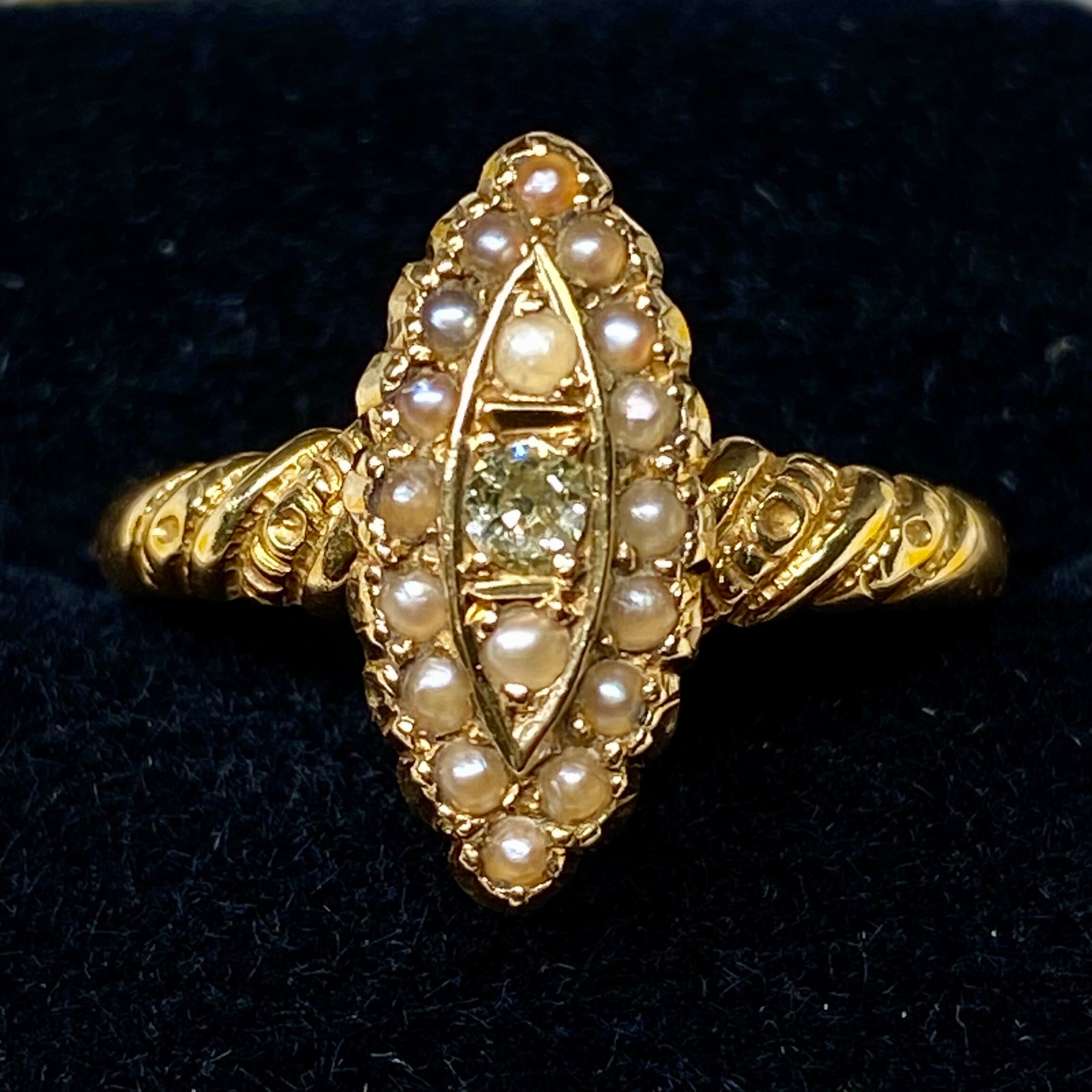 1876年SALE!クーポン併用可♪イギリス アンティークリングk18 オールドヨーロピアンカット ダイヤモンド シードパール