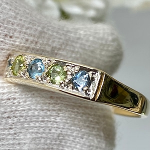 こちらブルートパーズとペリドットが、五石、1文字に並んでいて薄いブルーカラーと、薄いグリーンカラーが交互にキラキラ光ります。