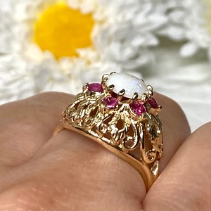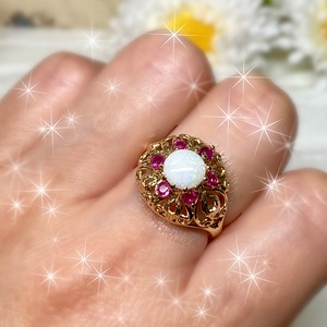 イギリス1970年 ヴィンテージリング オパールとルビーのドレスリング DR00104