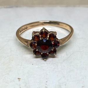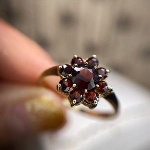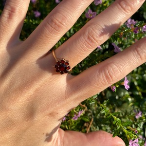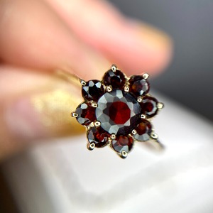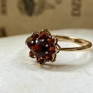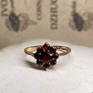 イギリス1970 ヴィンテージリング ガーネットのシンプルフラワーリング