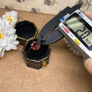 シングルカットされたガーネットは深みのある赤色がとても美しく、ルーペで覗いても内部に黒っぽいインクルージョンは見当たりません。