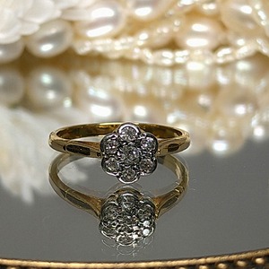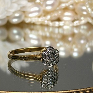 SALE!クーポン併用可♪イギリス アンティークリング オールドカットダイヤモンド クラスターリング お花のデイジー??
