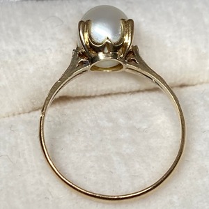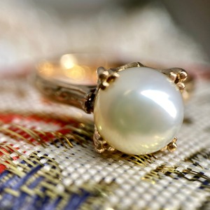 真珠はヴィンテージリングにしては非常に状態が良く、艶も照りもあり、干渉光がよく出ています。