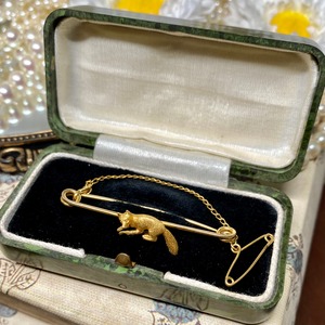 イギリス キツネ アンティーク ブローチ fox broach 15ct程度 ※ケースつき