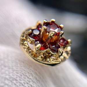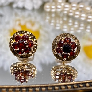 イギリス ヴィンテージ ピアス デイジーのお花のようなガーネット?