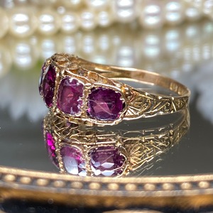 イギリス アンティークリング 5ストーン 大きめロードライトガーネット【希少カラー】