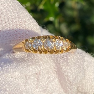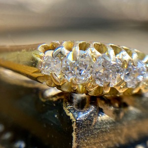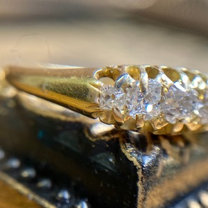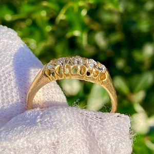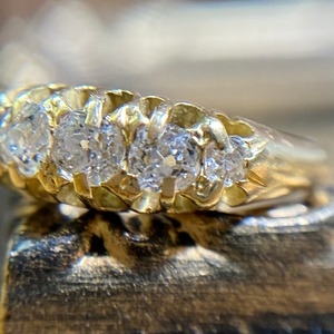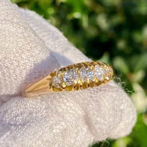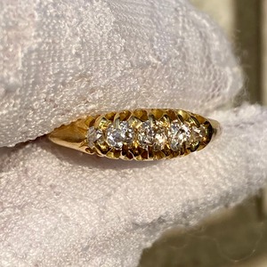 オールドカットのダイヤモンドが5pc並んだ、シンプルな一文字リングです。