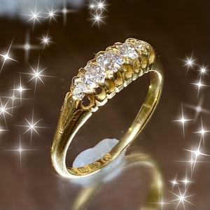 SALE!クーポン併用可♪イギリス アンティークリング 1890年?オールドヨーロピアンカットダイヤモンド/オールドマインカットダイヤモンド/魅惑の5pc☆☆☆心に残る美しい一文字リング☆☆☆