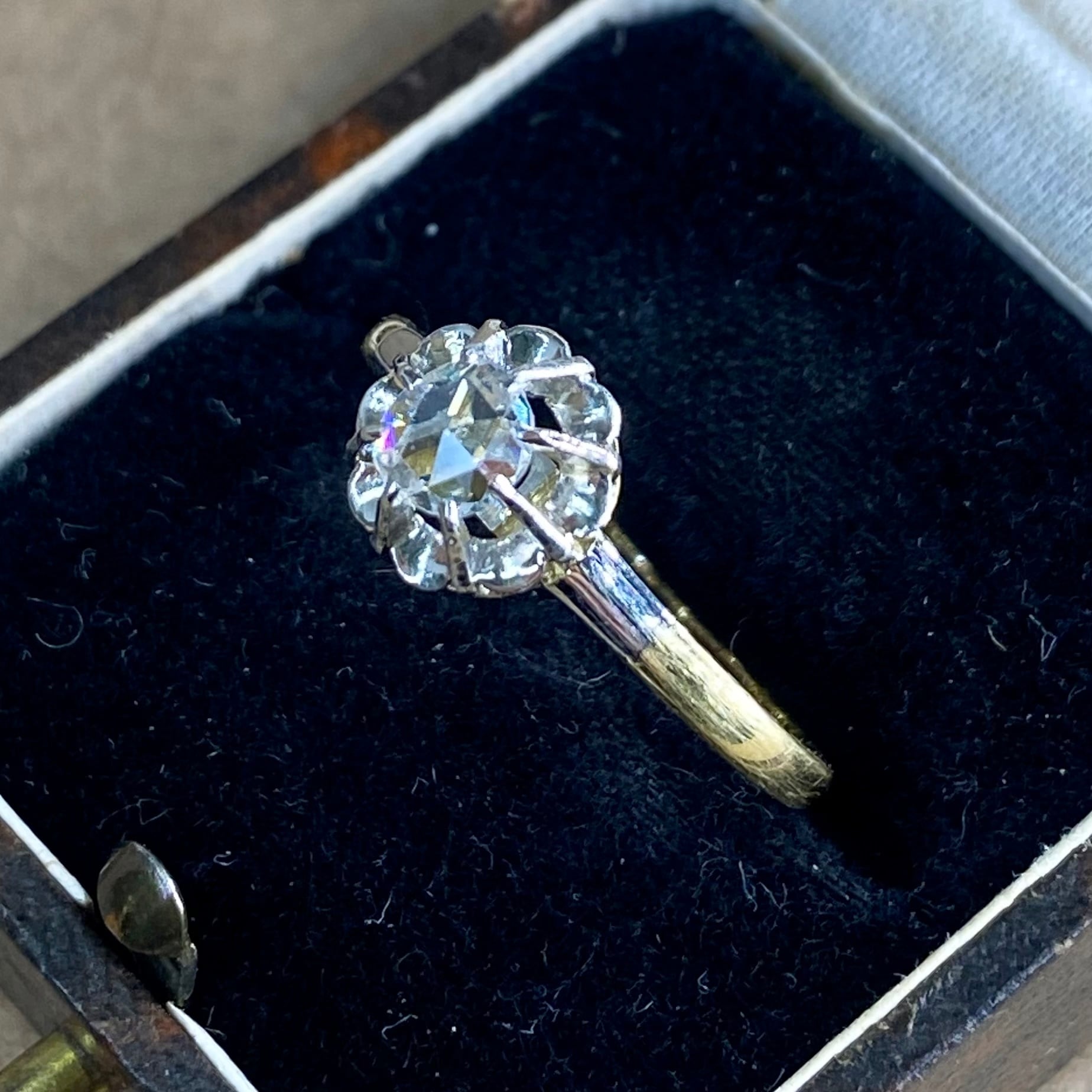 SALE!クーポン併用可♪イギリス アンティークリング バターカップ 大きなローズカットダイヤモンド