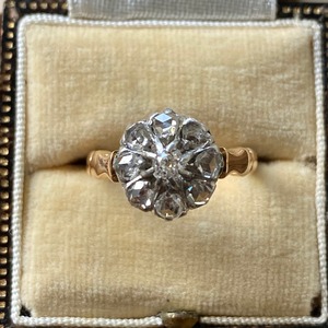 1PCだけ、欠けたのかな?と思うようなローズカットダイヤがあるのですが、うまく爪がフィットしているのでオリジナルかと思われます。
