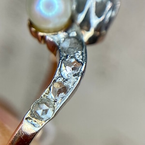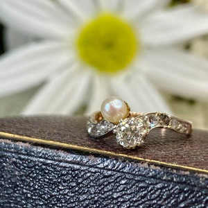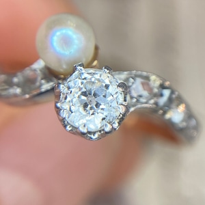 フランス アンティークリング オールドカット ダイヤモンド 0.15ct & パール リング 指輪 トワエモア (あなたと私) DR00363