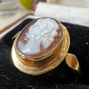 外国製 ヴィンテージ K14 カメオ リング 絵画を手元で愉しめるようなデザインの指輪 MR00607