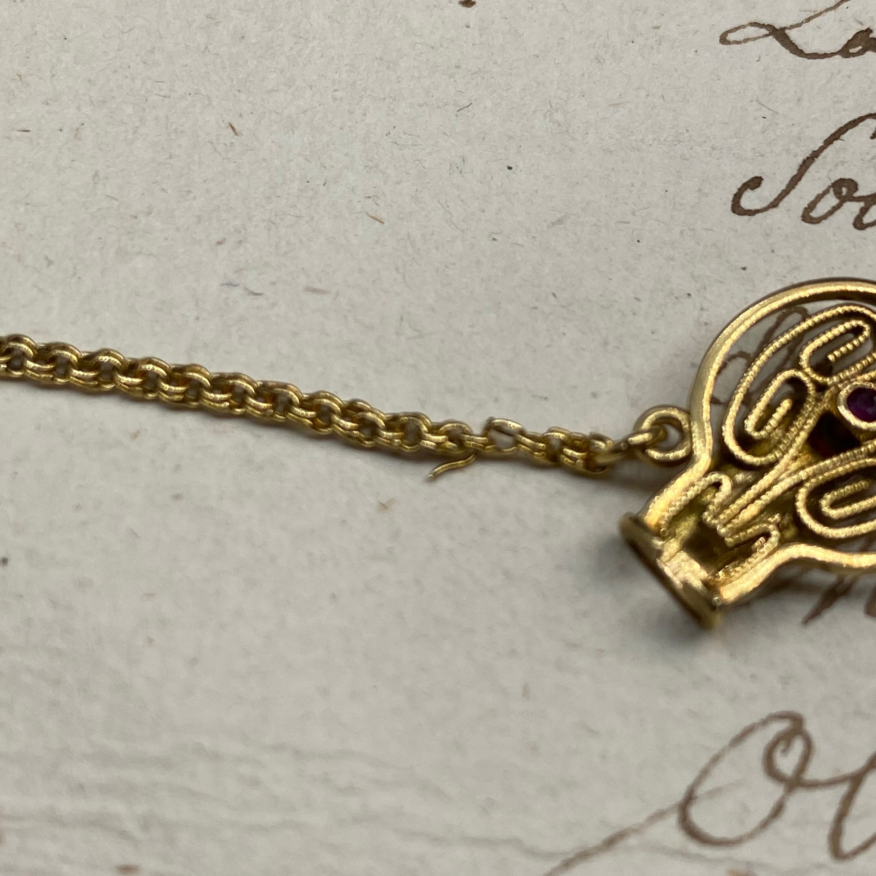フランス アンティーク フィリグリーブレスレット 馬の頭刻印 18金 透かし ルビー ダイヤモンド DBT00012