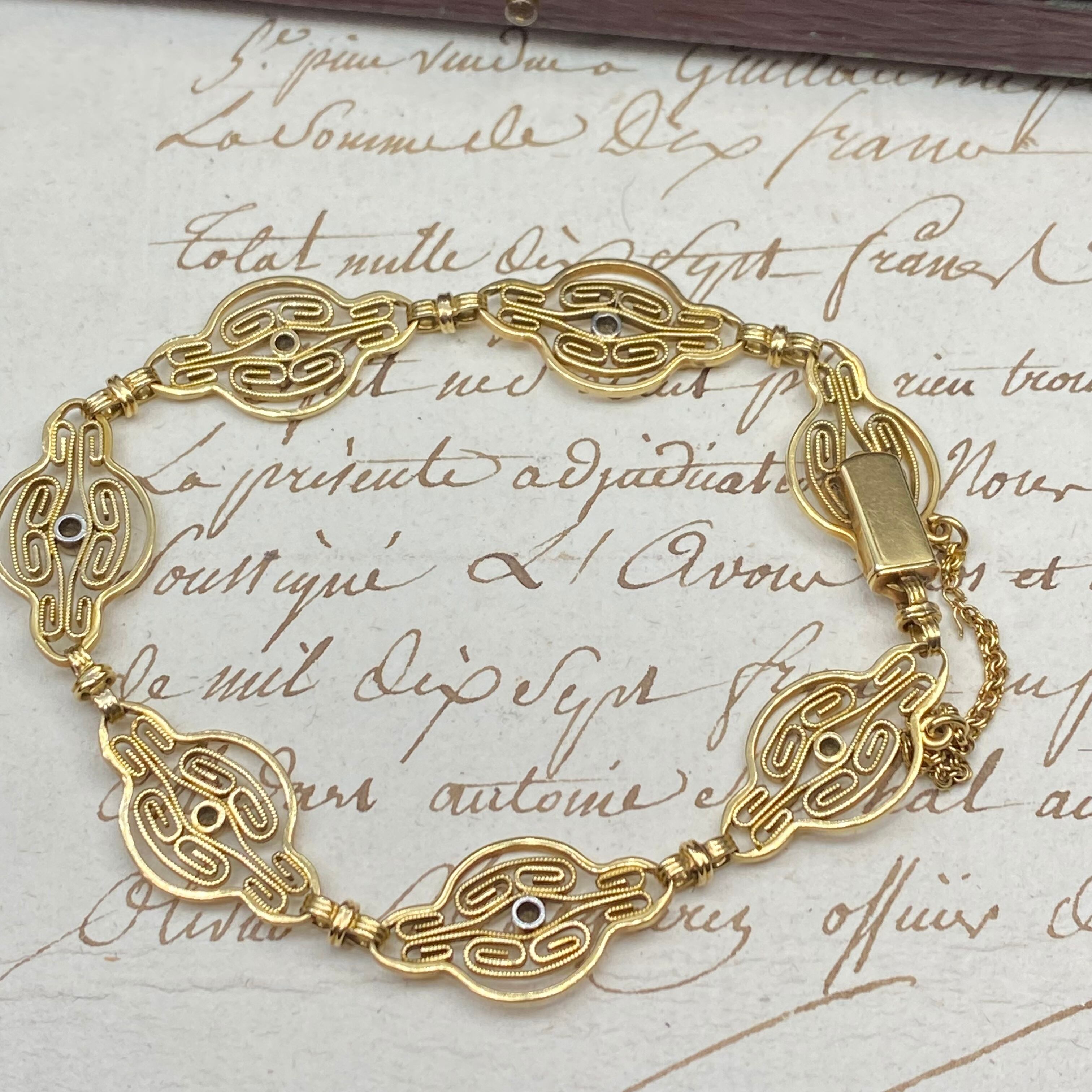フランスで作られた気品溢れるアンティークフィリグリーブレスレットです。