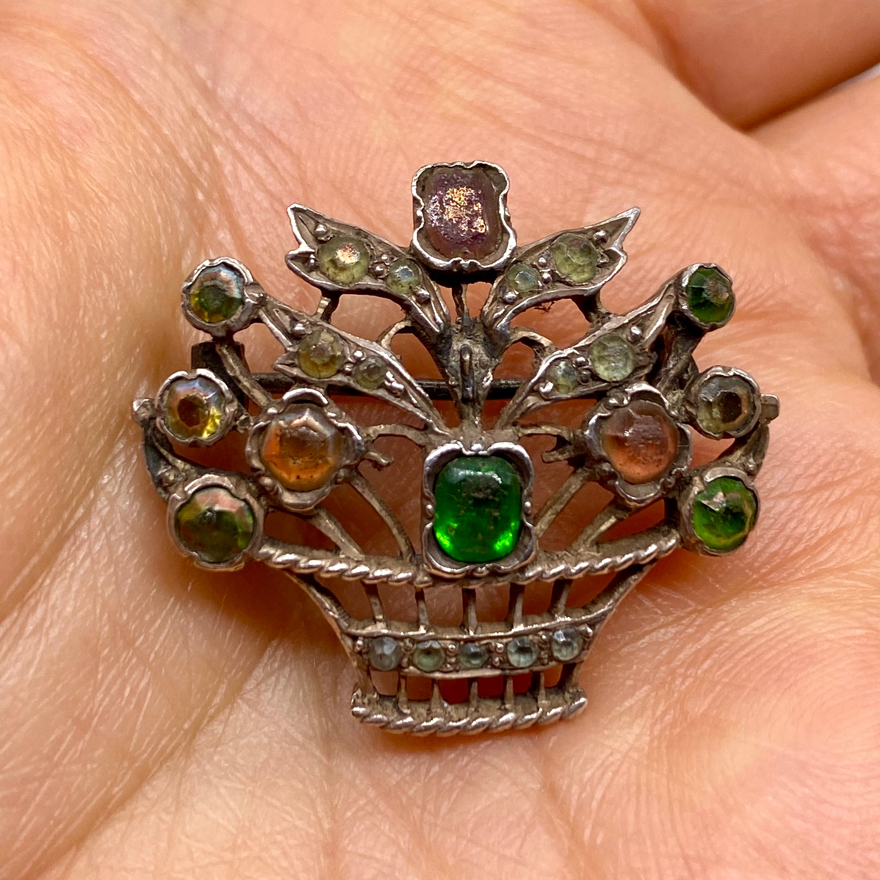 フランス アンティーク ブローチ 1800年後半頃 〜ジャルディネッティ マルチカラー ストーン ガラス による小さな草花の小さな庭 〜 BN