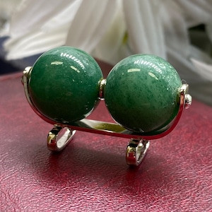 【日本の作品】昭和レトロ デザイン SILVER 珍しいアベンチュリン2珠の帯留め BN