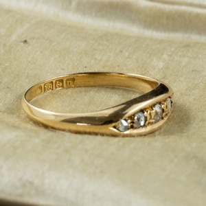 アンティークカットダイヤモンドが5PC留められたアンティークリングをご紹介します。