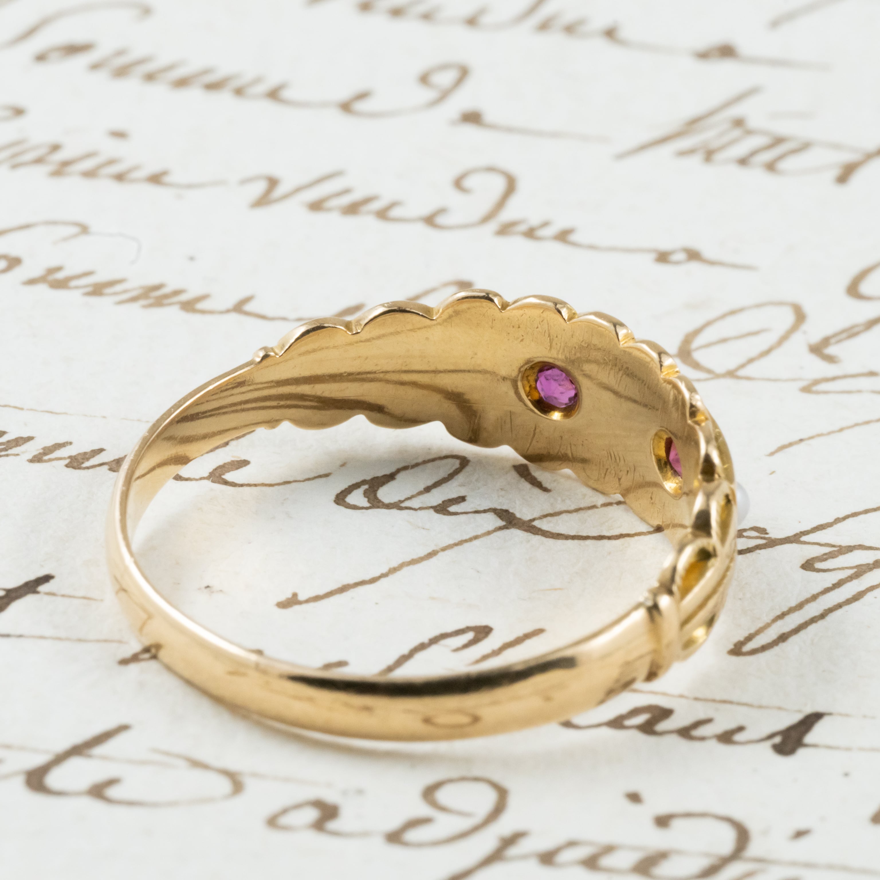 イギリス アンティークリング 1903年 K18 ルビー パール DR00454