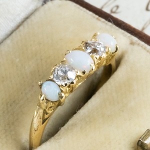 イギリス アンティーク リング K18 オールドヨーロピアンカット ダイヤモンド オパール 1900年前半頃 DR00530